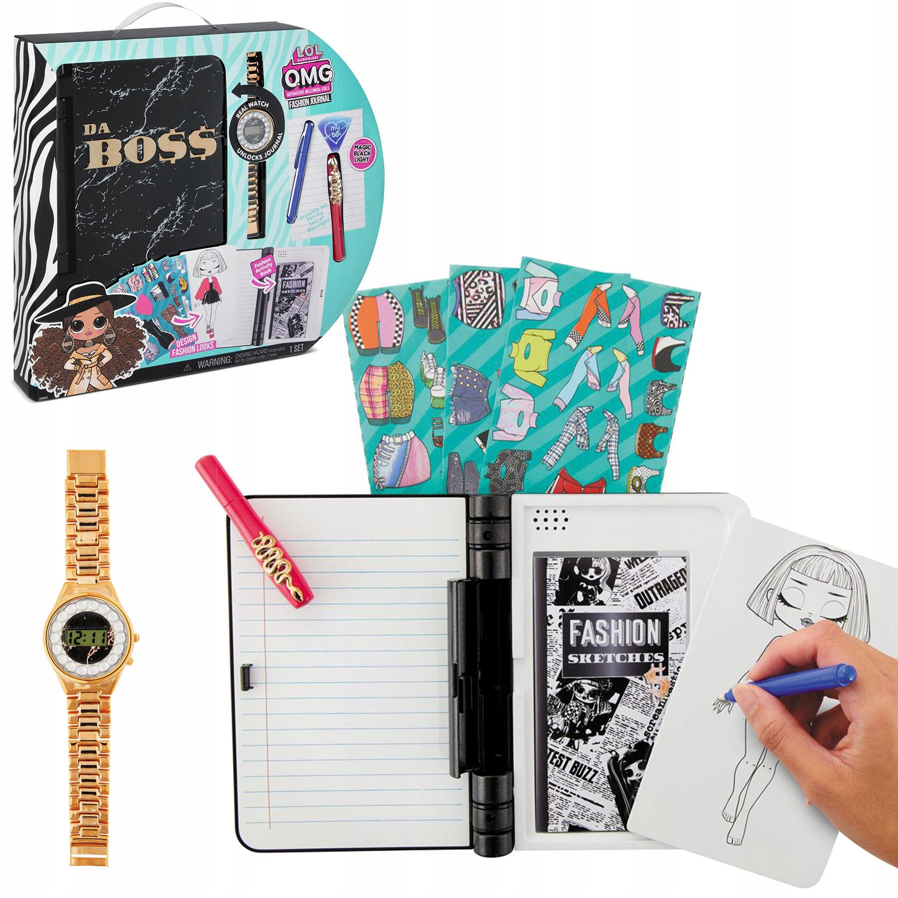 Станьте королевой моды, как Да Босс, и храните все свои секреты в этом стильном электронном дневнике! Откройте Модный дневник Л.О.Л. Сюрприз! МОЙ БОГ. Outrageous Millennial Girls™ с прилагаемыми часами из настоящего золота. При открытии дневника играет песня L.O.L. Сюрприз!