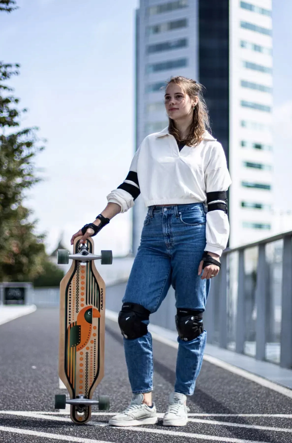 Доска изготовлена из 9-слойного клена и имеет плоская вогнутая форма, что обеспечивает хороший баланс.Кроме того, положение колеса (проходное) обеспечивает дополнительную устойчивость.Благодаря такой низкой доске вы будете лучше балансировать и сможете легко научиться кататься на лонгборде.