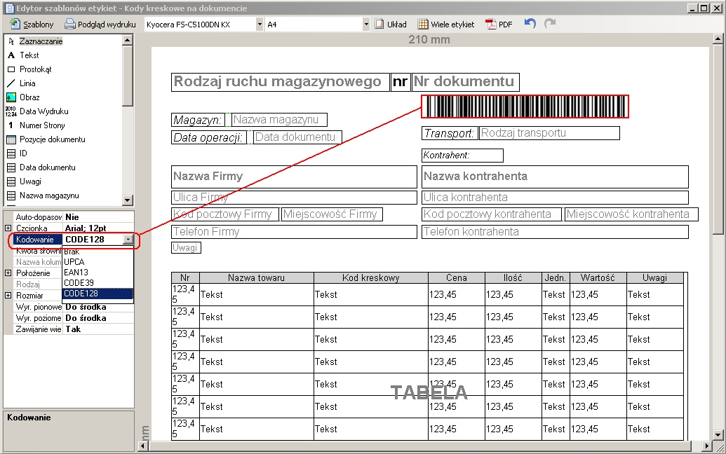 - редактор документов для создания собственного внешнего вида документа, например, с логотипами, кодами, фотографиями продуктов,
