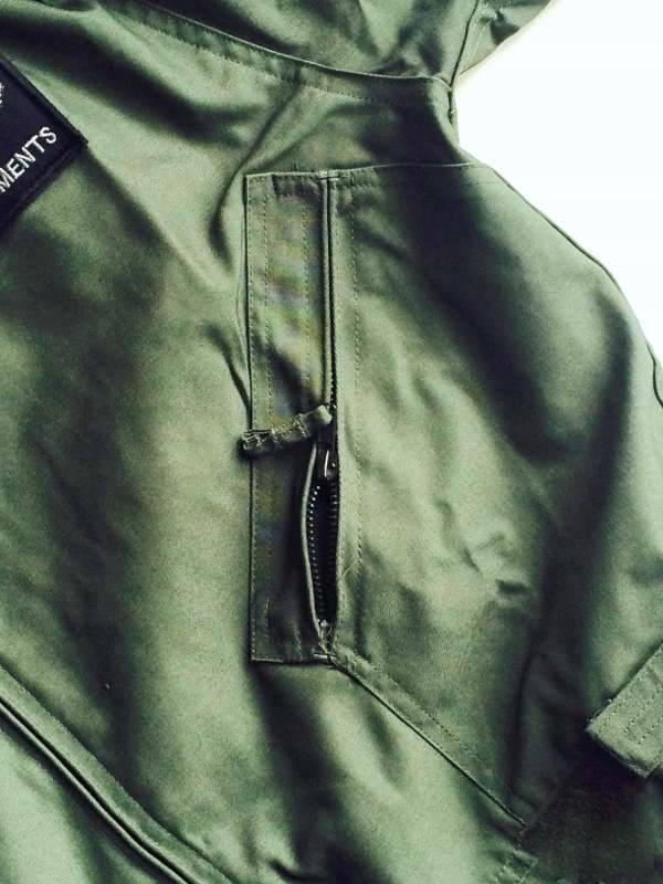 В костюме всего пять карманов: один на рукаве, два на груди и два под поясом. Все на молниях, кроме последней, которая открыта. Кроме того, на костюме имеются липучки для крепления нашивок: по одной на каждом плече и одной на правой груди. Весь костюм застегивается на двустороннюю молнию. Костюм также оснащен застежками-липучками на штанинах, рукавах и по ширине талии. Это гарантирует идеальную посадку и гибкость.