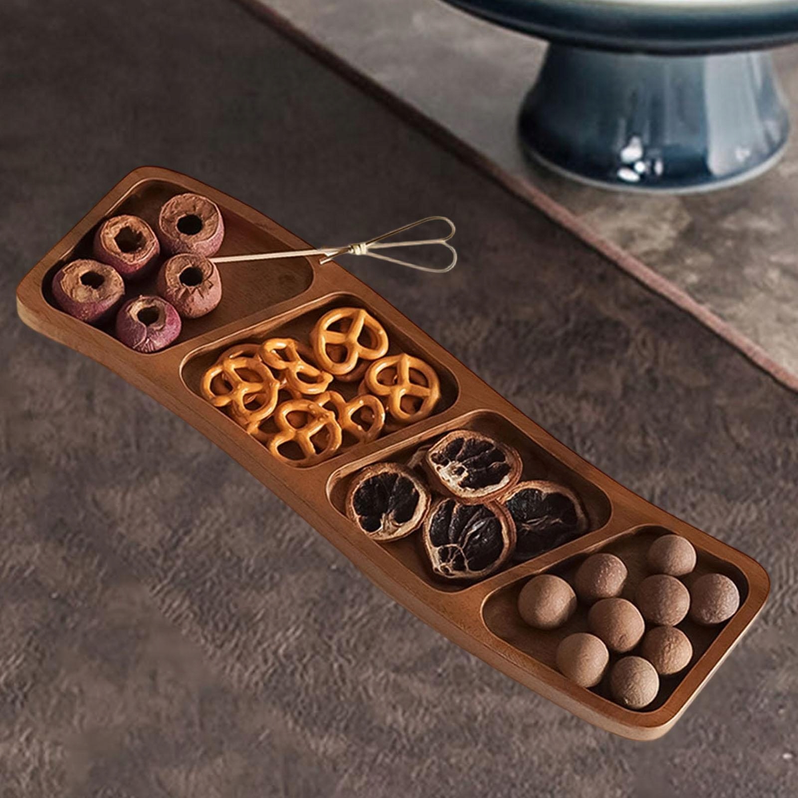Деревянный поднос для вечеринки, поднос для закусок пищевых фруктов, разделенный поднос для подачи 4 сетки