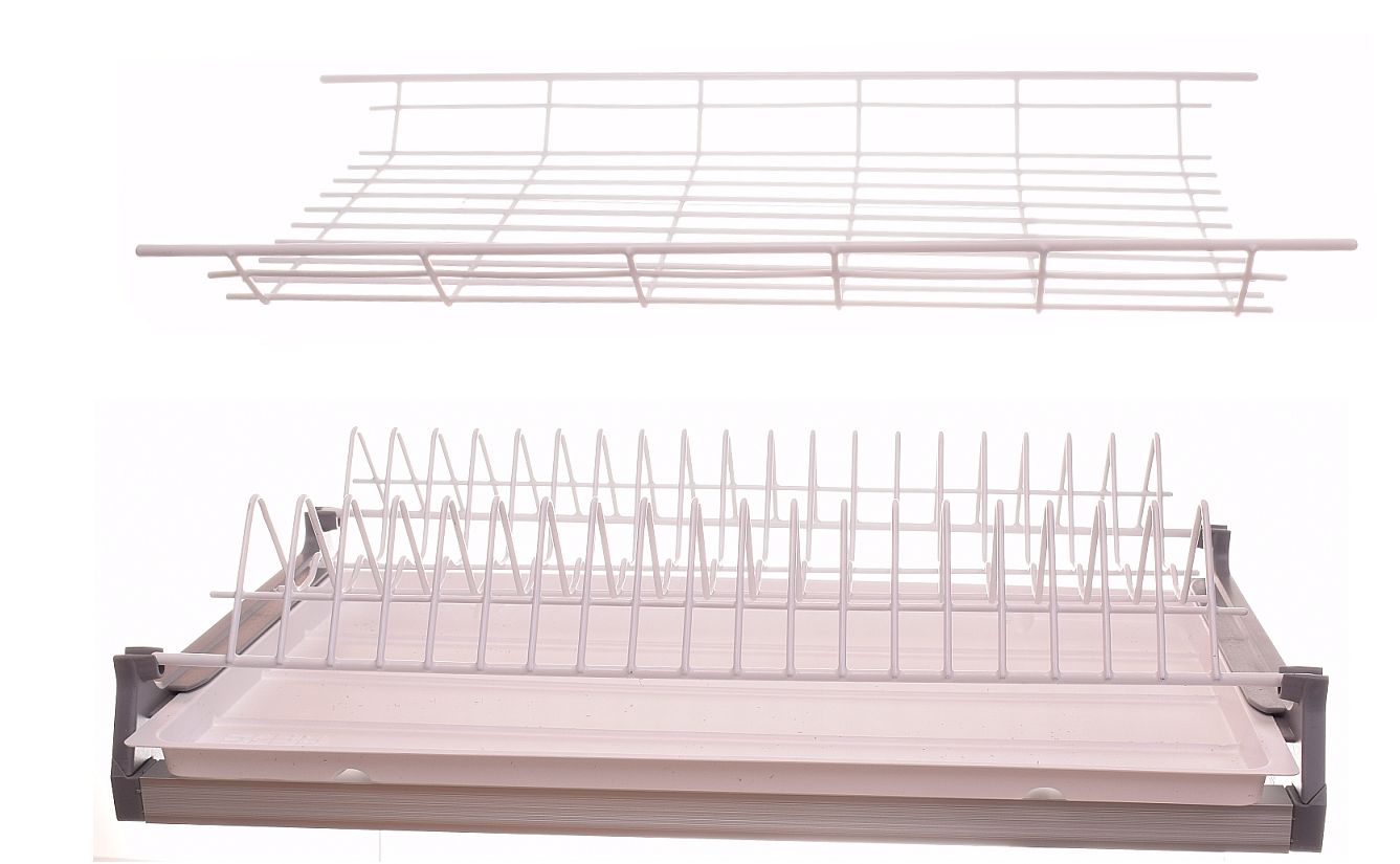 ДВУХУРОВНЕВЫЙ ПОДДОН ОТЛИЧНОГО КАЧЕСТВА НА АЛЮМИНИЕВОМ ОСНОВЕ, ИСПОЛЬЗУЕМЫЙ В ПОДВЕСНЫХ ШКАФАХ С ОТКРЫТЫМ ДНОМ. СНАБЖЕН ПЛАСТИКОВЫМ ПОДДОНОМ, КОТОРЫЙ ВСТАВЛЯЕТСЯ В СПЕЦИАЛЬНУЮ РАМКУ, ПРИКРЕПЛЕННУЮ ПО БОКАМ ШКАФА.