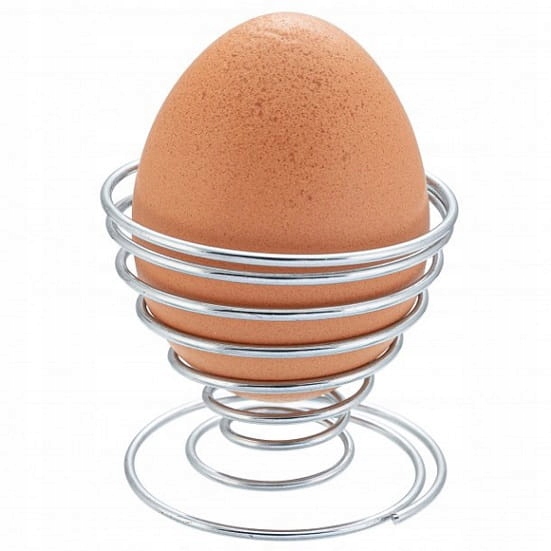 Подставка для яиц из хромированной стали необычной пружинной формы.