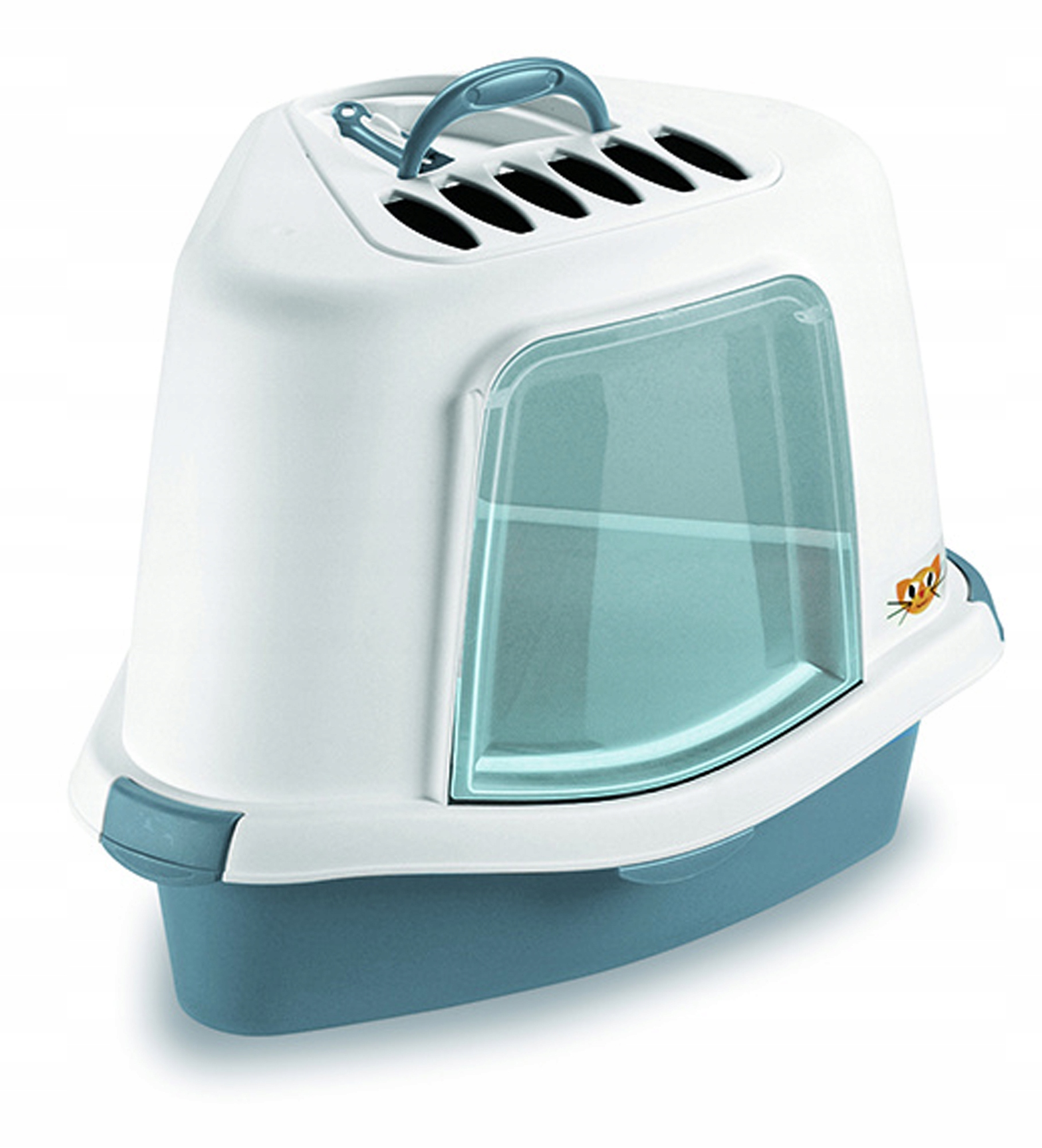 Sprint Plus — туалетный лоток, который поместится в угол любого дома! Он занимает мало места и позволяет поддерживать порядок в доме, создавая при этом идеальное тихое место для вашей кошки. По бокам туалетного лотка имеются практичные крючки для легкого снятия крышки, что делает чистку и замену наполнителя простой и быстрой!