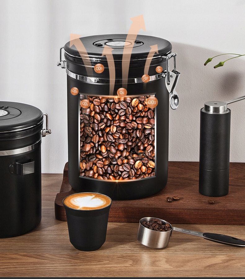 Герметичная банка для кофе с зажимом — это изящный и практичный контейнер, который дольше сохранит свежесть и интенсивный аромат зерен. Изготовленный из высококачественной нержавеющей стали и оснащенный силиконовой прокладкой, он гарантирует идеальную герметичность, защищая содержимое от воздуха, влаги и света. Уникальный клапан в крышке выпускает углекислый газ, естественным образом выделяемый кофе, одновременно блокируя доступ кислорода, что значительно продлевает его свежесть. Встроенный штамп даты позволяет легко контролировать время хранения, а входящий в комплект мерный стакан из нержавеющей стали позволяет точно отмерять порции. Банка емкостью 1,8 л отлично подойдет не только для кофе, но и для хранения чая, сахара, какао или хлопьев, а ее элегантный внешний вид станет украшением любой кухни.