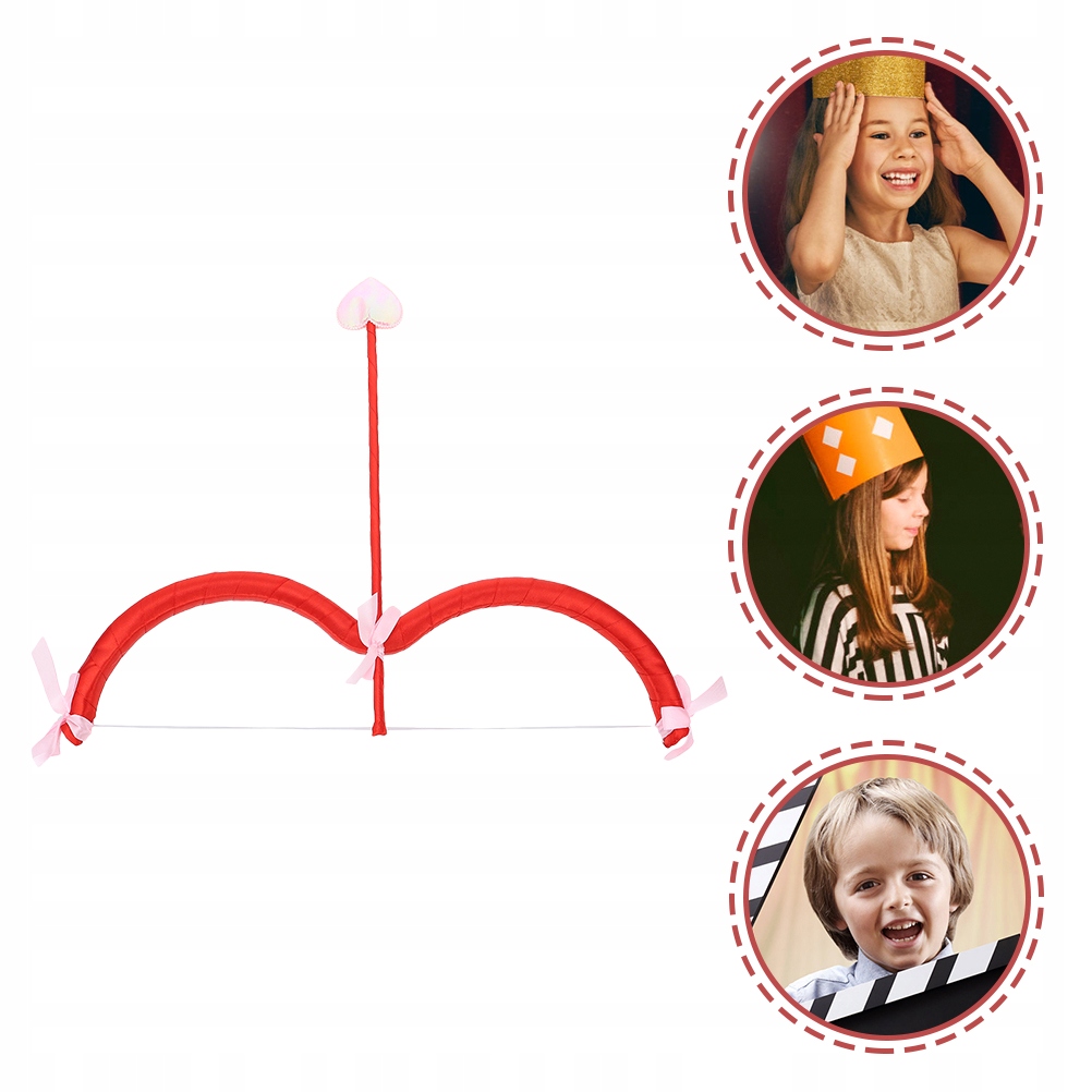 Лук из пластика в красном и розовом цвете. Наконечник стрелы в форме сердца.