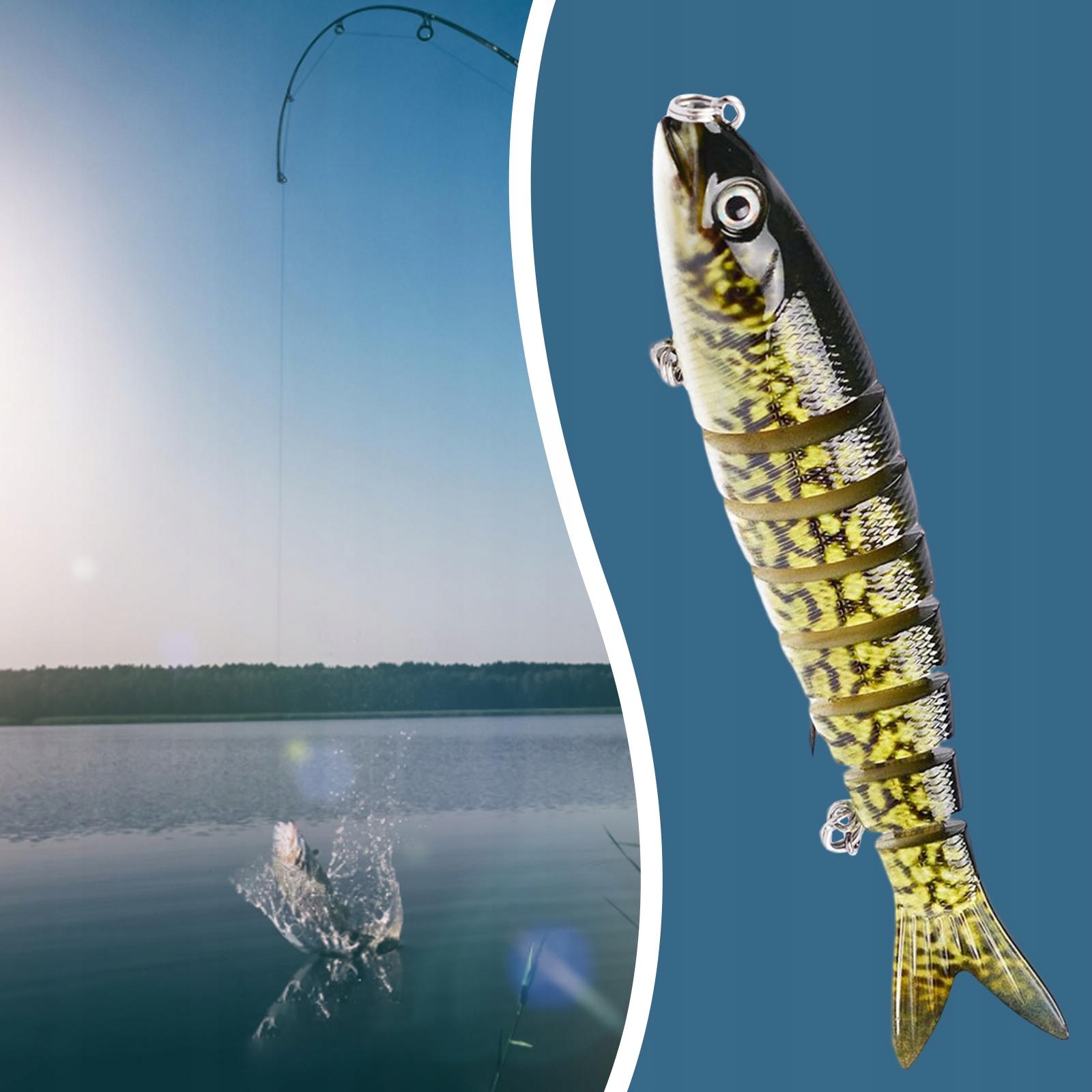 8-сегментные реалистичные рыболовные приманки. Благодаря 8-сегментному многошарнирному корпусу они могут медленно тонуть и гибко двигаться в воде. Кроме того, реалистичное плавание позволяет привлечь больше улова и спровоцировать нападения хищной рыбы.