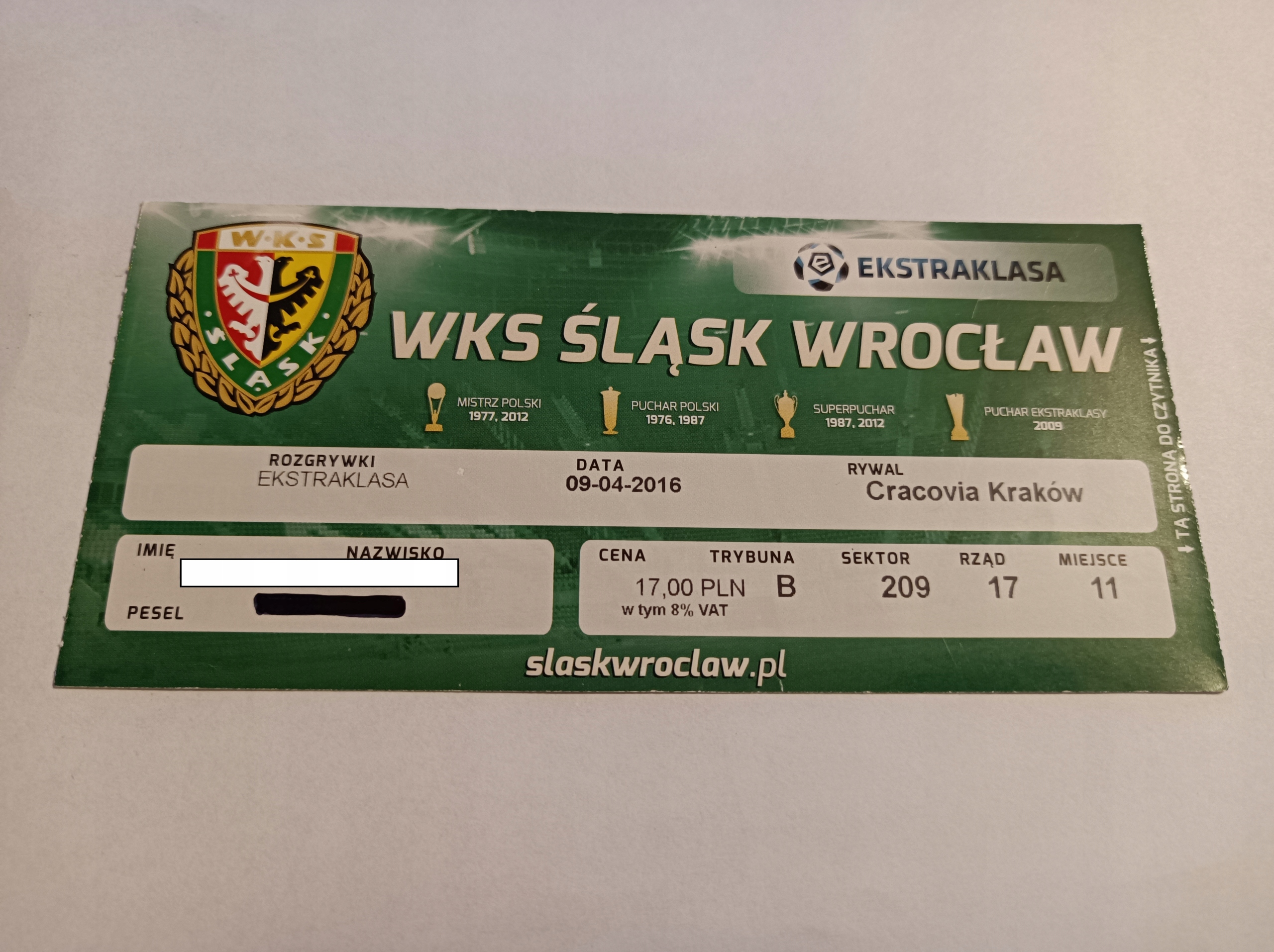 ŚLĄSK WROCŁAW - CRACOVIA KRAKÓW 09-04-2016