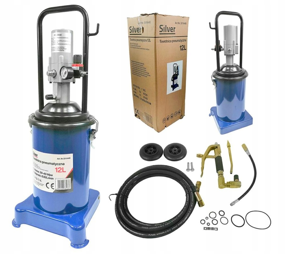 ПНЕВМАТИЧЕСКИЙ шприц для смазки объемом 12 л, ОБЪЕМОМ 12 литров и ПРОИЗВОДИТЕЛЬНОСТЬЮ 0,82 л/мин
