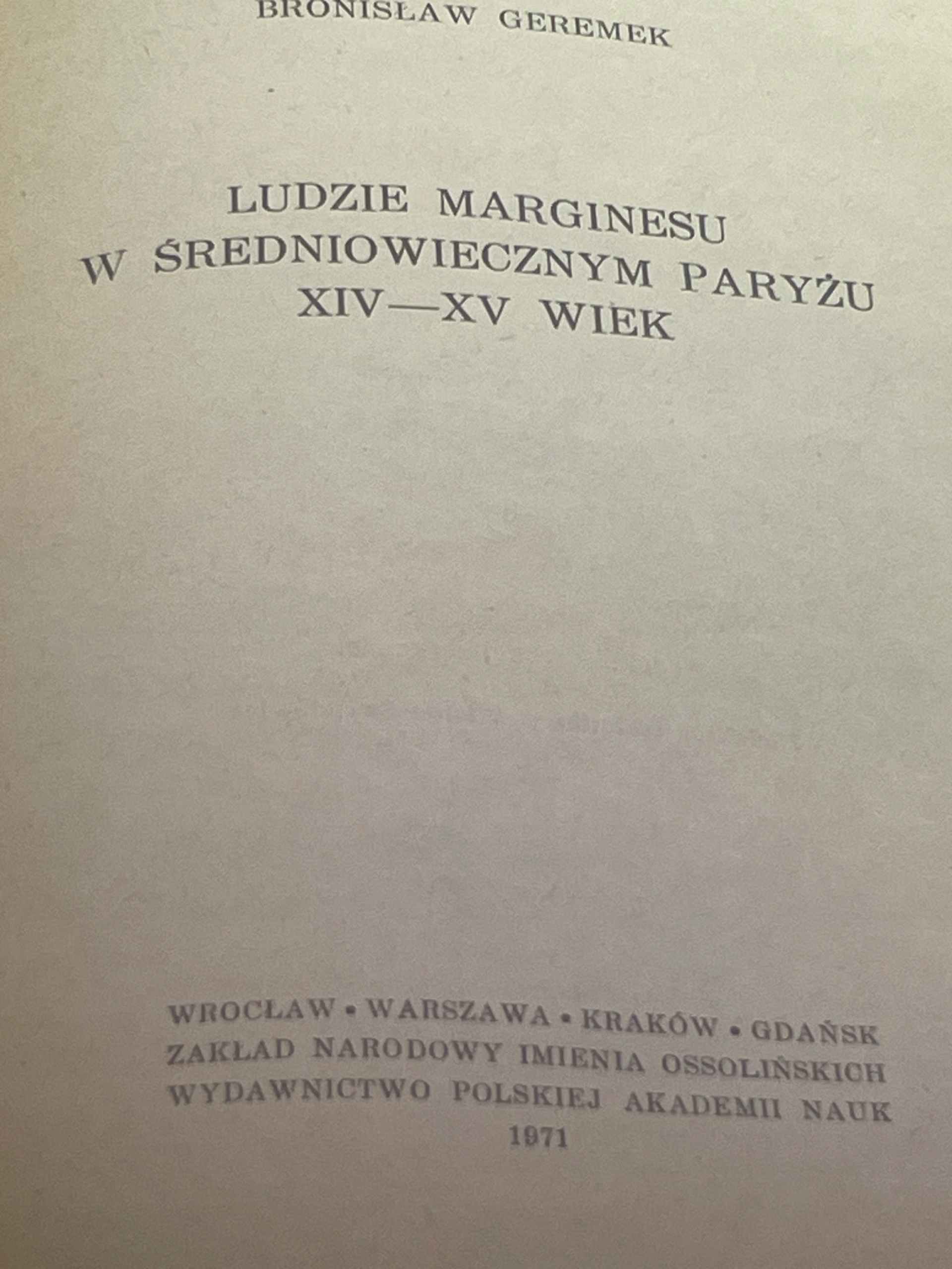 Ludzie marginesu w średniowiecznym Paryżu XIV-XV wiek Geremek 1971 r