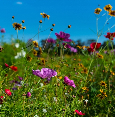 Это композиция из однолетних растений, которые начинают цвести по-разному уже через несколько недель после посева. Смесь включает аборигенные и декоративные виды, что делает луг устойчивым к засухе и переносит сложные условия, например, сильный солнечный свет. Летом сено цветет до первых заморозков.