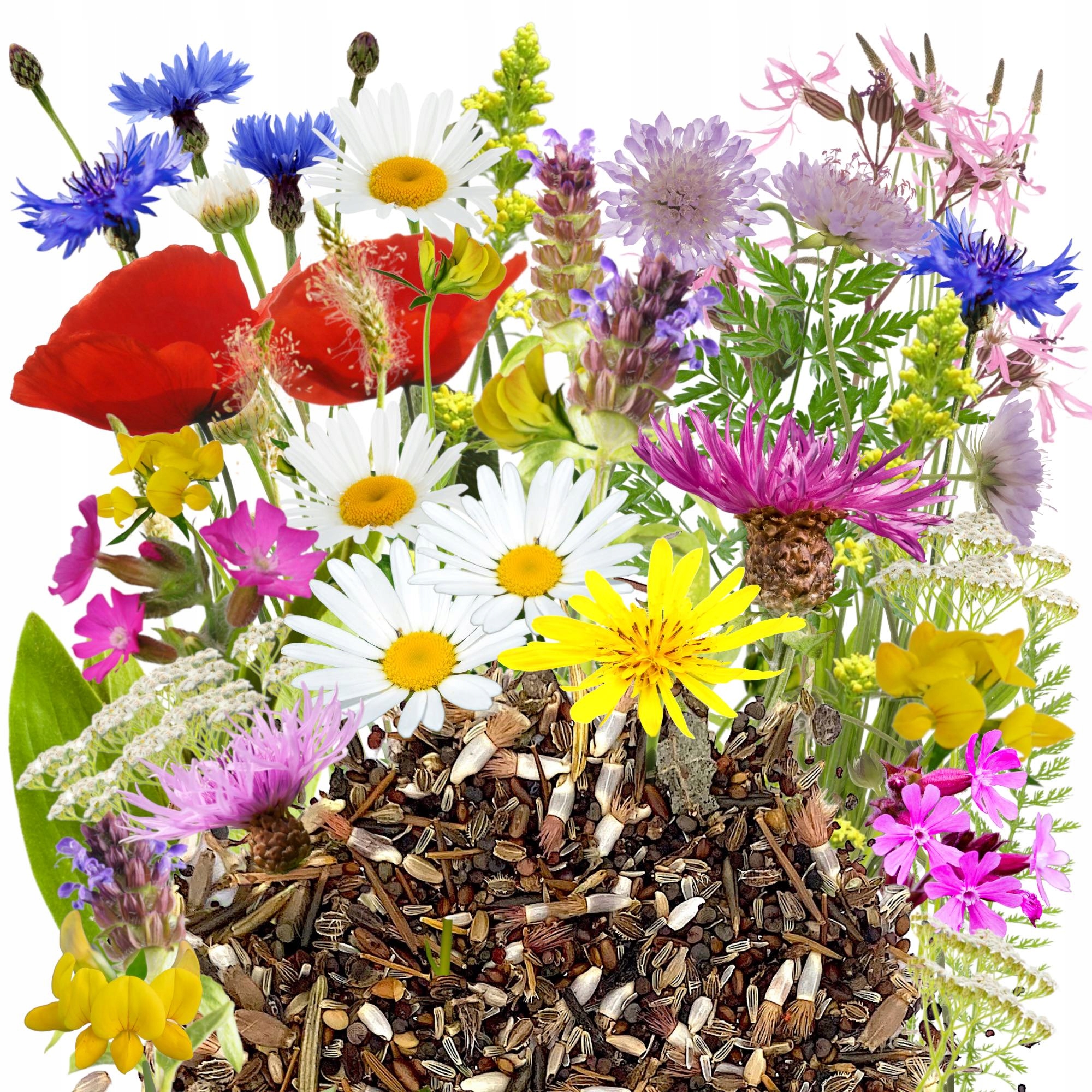 Смесь цветов с самых распространенных свежих лугов Польши. Композиция из многолетних видов с добавлением однолетних.