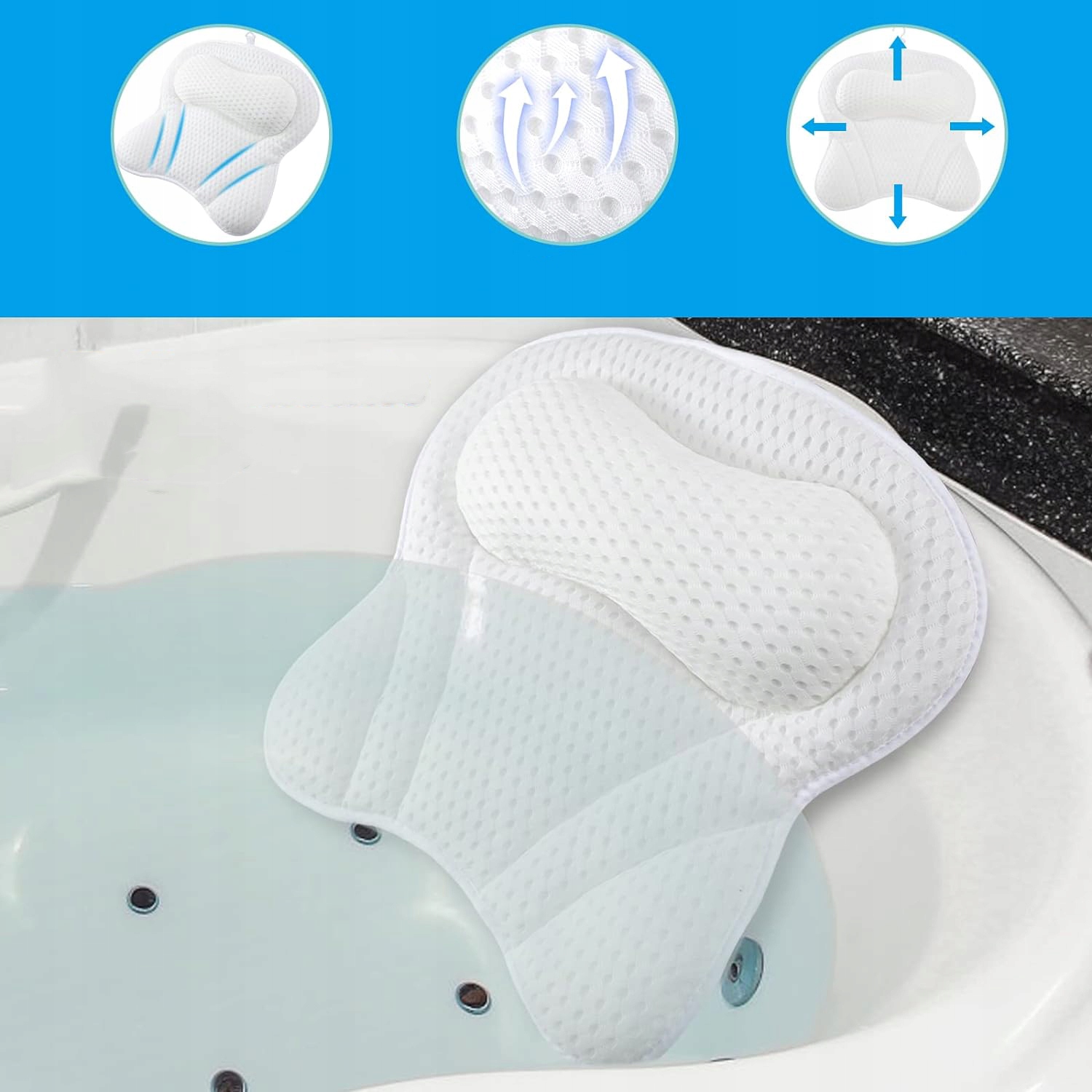 LUKSUSOWA PODUSZKA DO WANNY Z 6 WYDAJNYMI PRZYSSAWKAMI DO GORĄCA JACUZZI