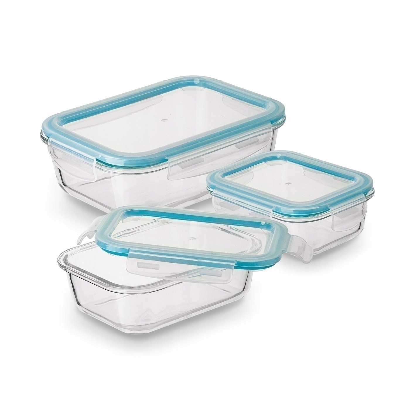 LUNCHBOX Szklany POJEMNIK do MIKROFALI na ŻYWNOŚĆ z Pokrywką Zestaw 3szt