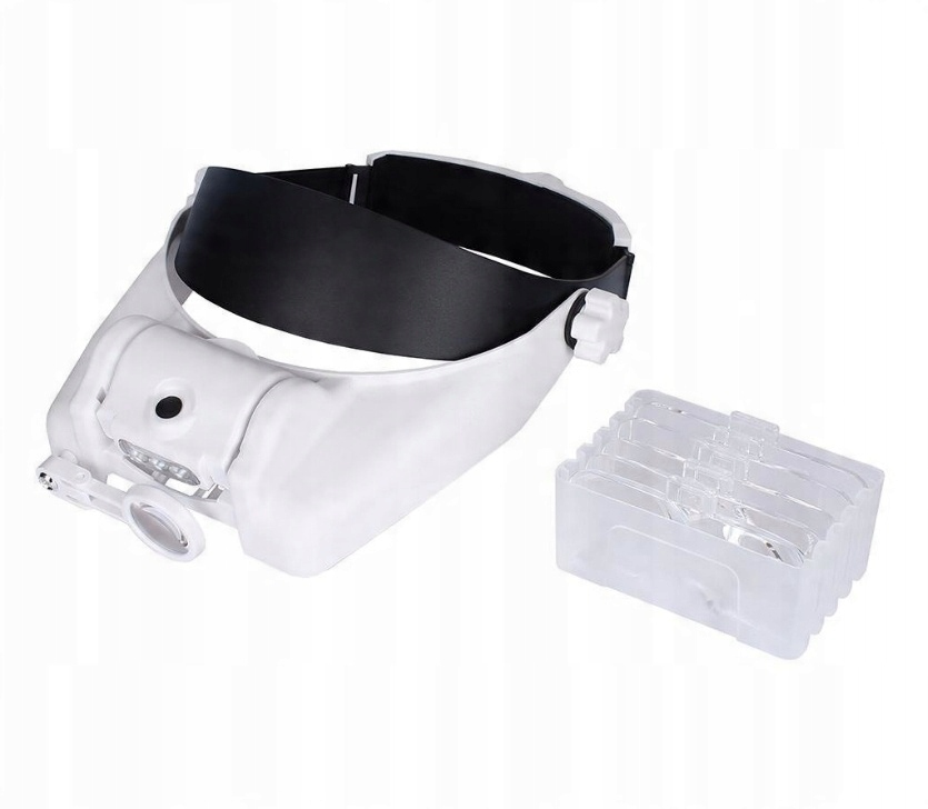 Оптическая система наголовной лупы состоит из двух основных линз (прямоугольной, предназначенной для просмотра двумя глазами) и одной маленькой круглой линзы (предназначенной для одного глаза). Линзы можно сдвинуть в сторону для лучшего увеличения. В комплект входят сменные линзы, которые позволяют дополнительно варьировать уровень увеличения. Все линзы изготовлены из полимерного оптического стекла, которое не только обеспечивает очень четкое и контрастное изображение, но и очень прочное.