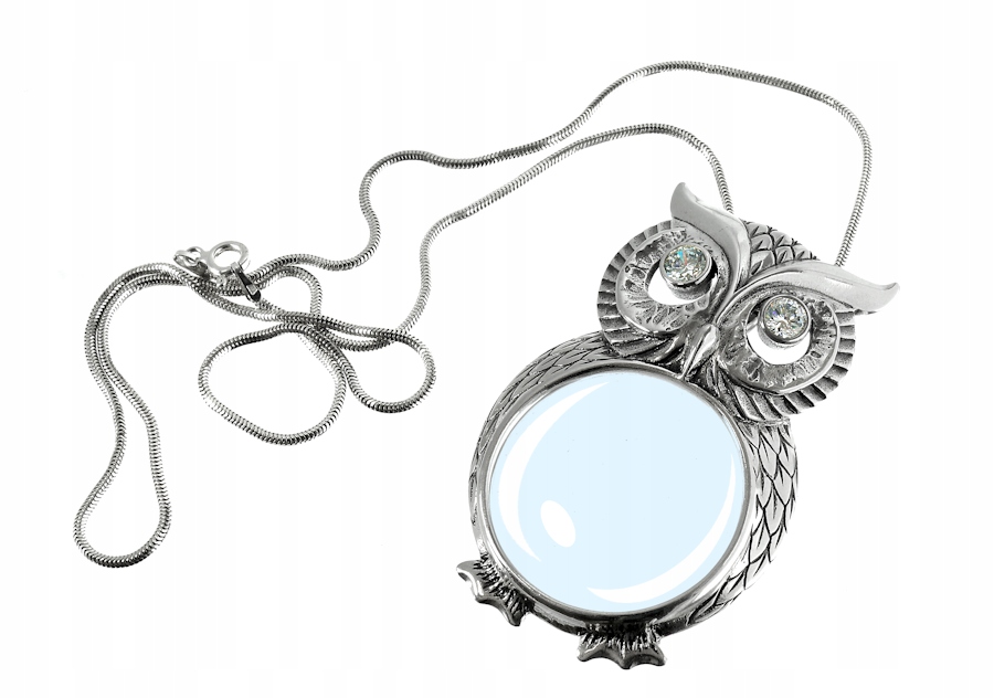 Подвеска имеет открывающуюся подвеску, которая при необходимости позволяет легко снять и надеть сову с помощью лупы с цепочки.