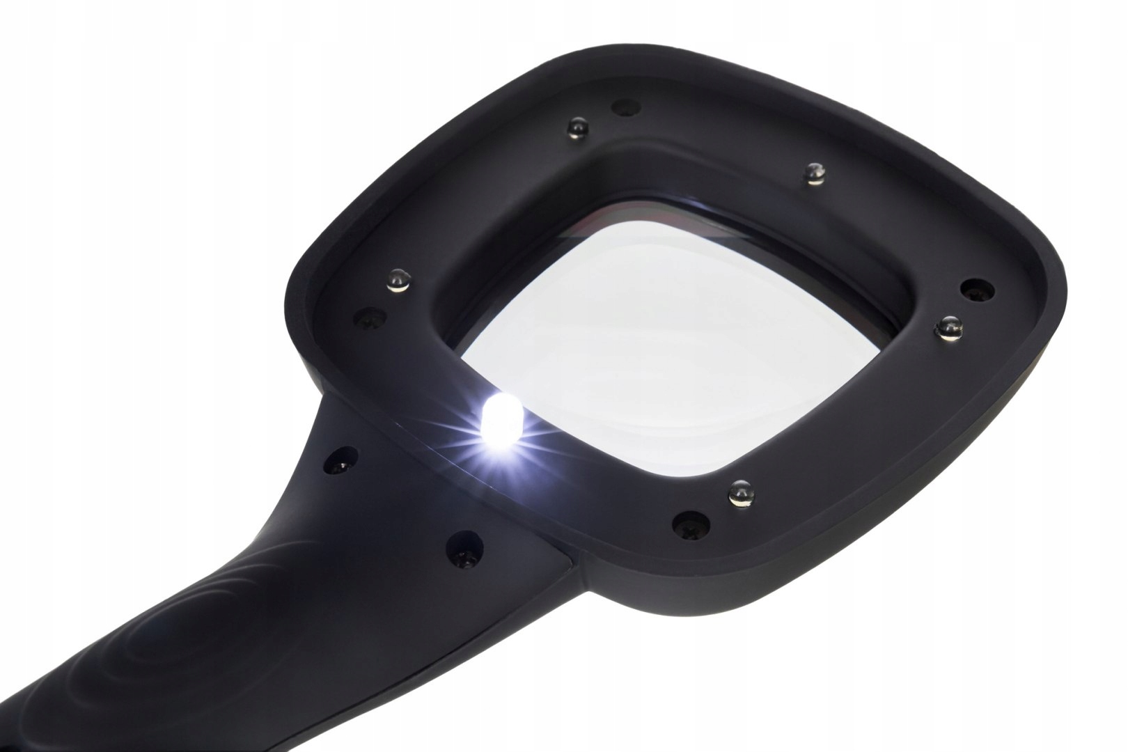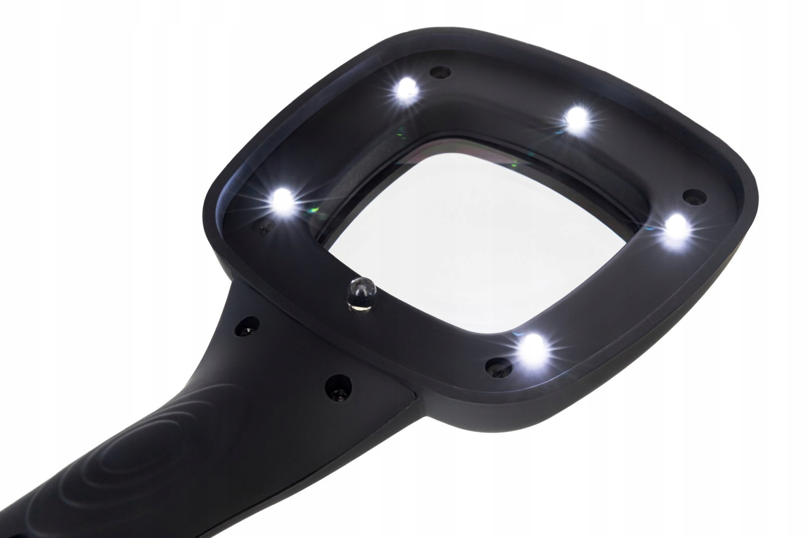 Все оптические элементы этого увеличительного стекла изготовлены из пластика. Увеличение очень легкое. Объектив передает острую картину без размытых областей или аберраций. Имеет переменный угол наклона. Светодиодное освещение было размещено рядом с объективом. Его ясность регулируется с использованием переключателя на корпусе. Освещение имеет питание аккумулятора (батареи, купленные отдельно).