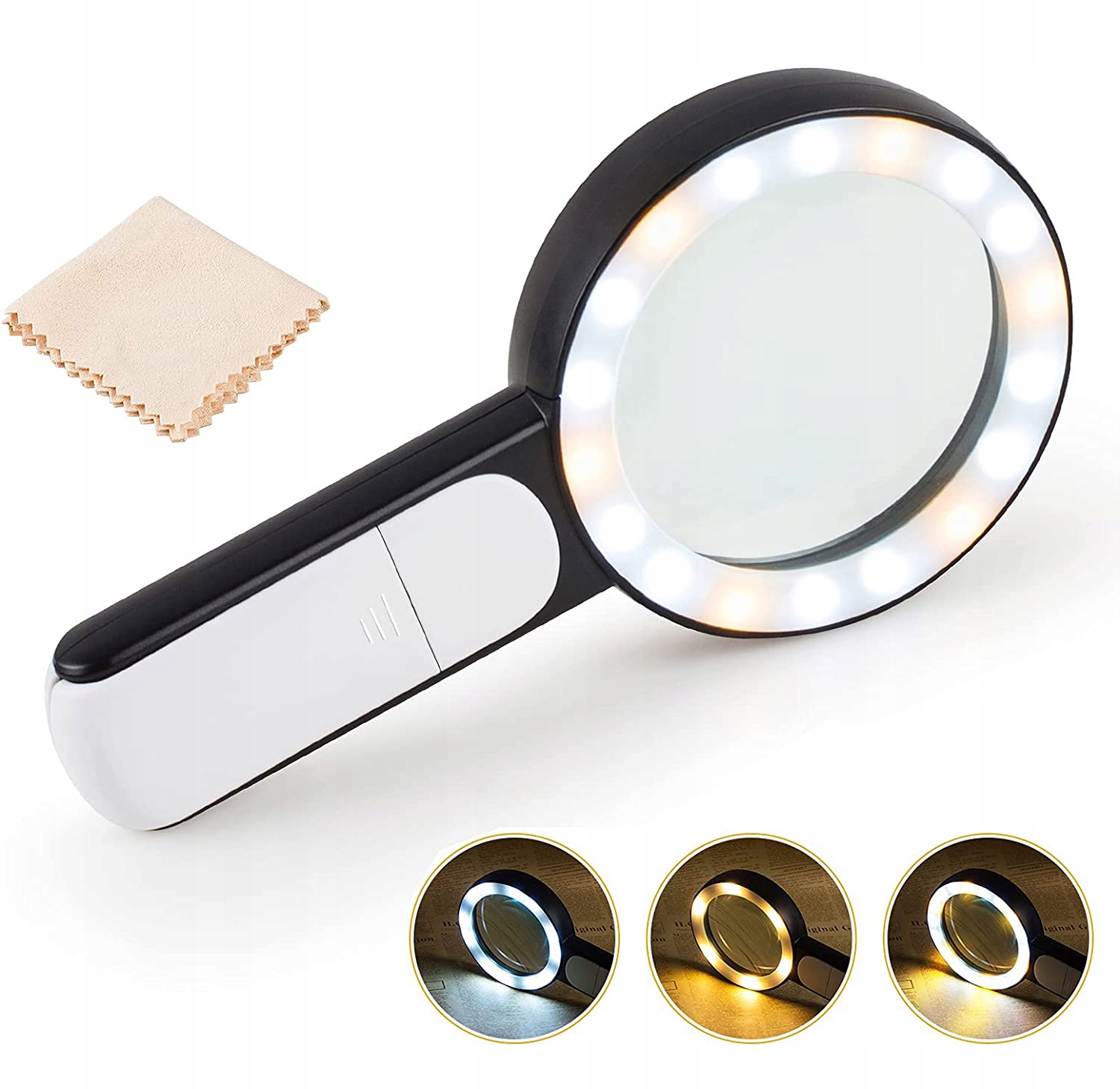 18 светодиодов и 3 режима освещения: 18 встроенных энергосберегающих светодиодов ручной лупы позволяют легко читать даже в темноте. ночь. 3 режима освещения (холодный свет, мягкий свет, смешанный свет) можно переключать вручную с разной интенсивностью света, чтобы лучше защитить ваши глаза, что особенно подходит для людей с дегенерацией желтого пятна, дальнозоркостью или амблиопией.