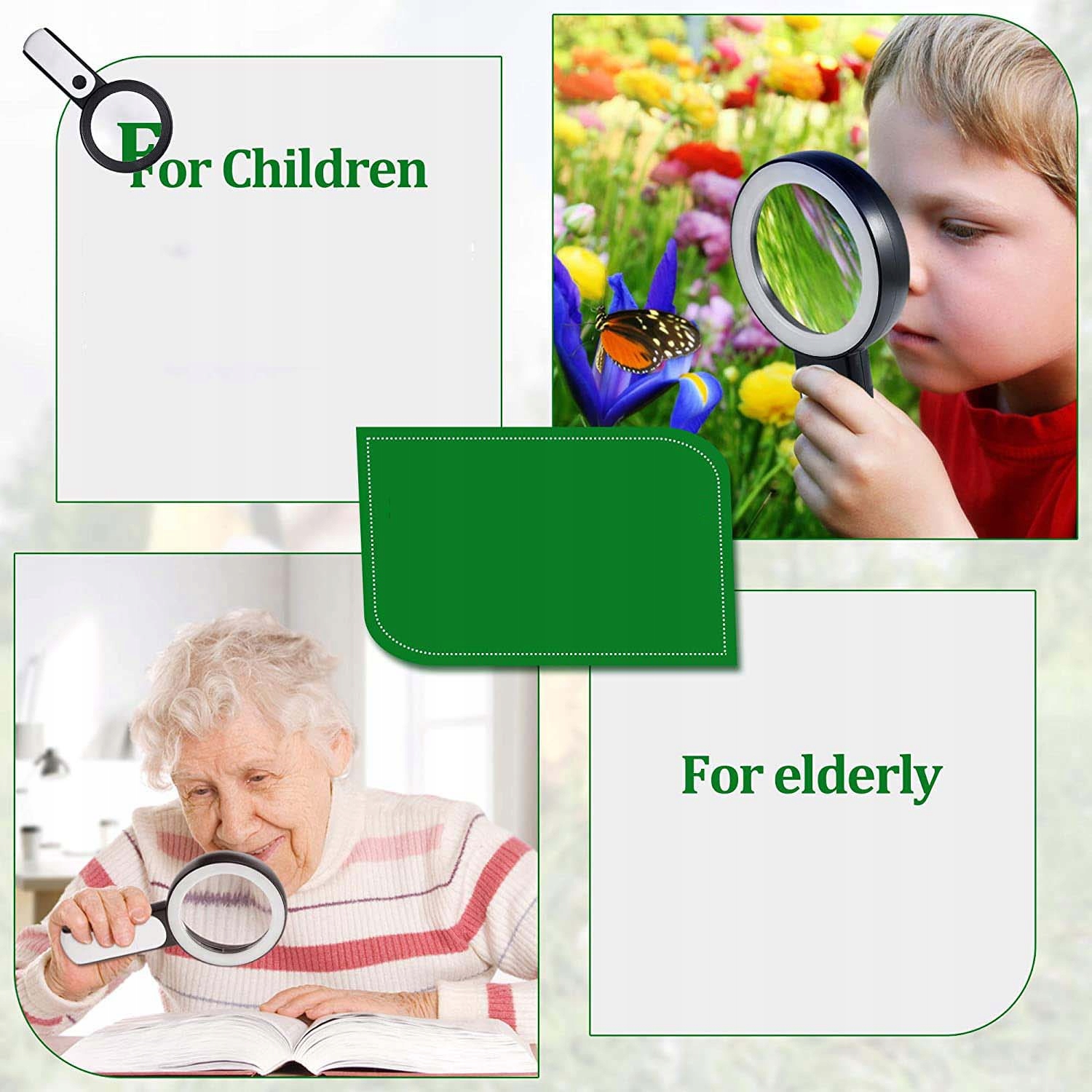 Идеальный подарок для пожилых людей и детей: ручная лупа с подсветкой подходит пожилым людям для чтения мелкого шрифта в руководствах, квитанциях, рецептах, лекарствах. бутылочек, а также для чтения книг, газет, журналов и т. д. Это способствует научным и исследованиям природы, стимулирует интерес детей к окружающему миру.