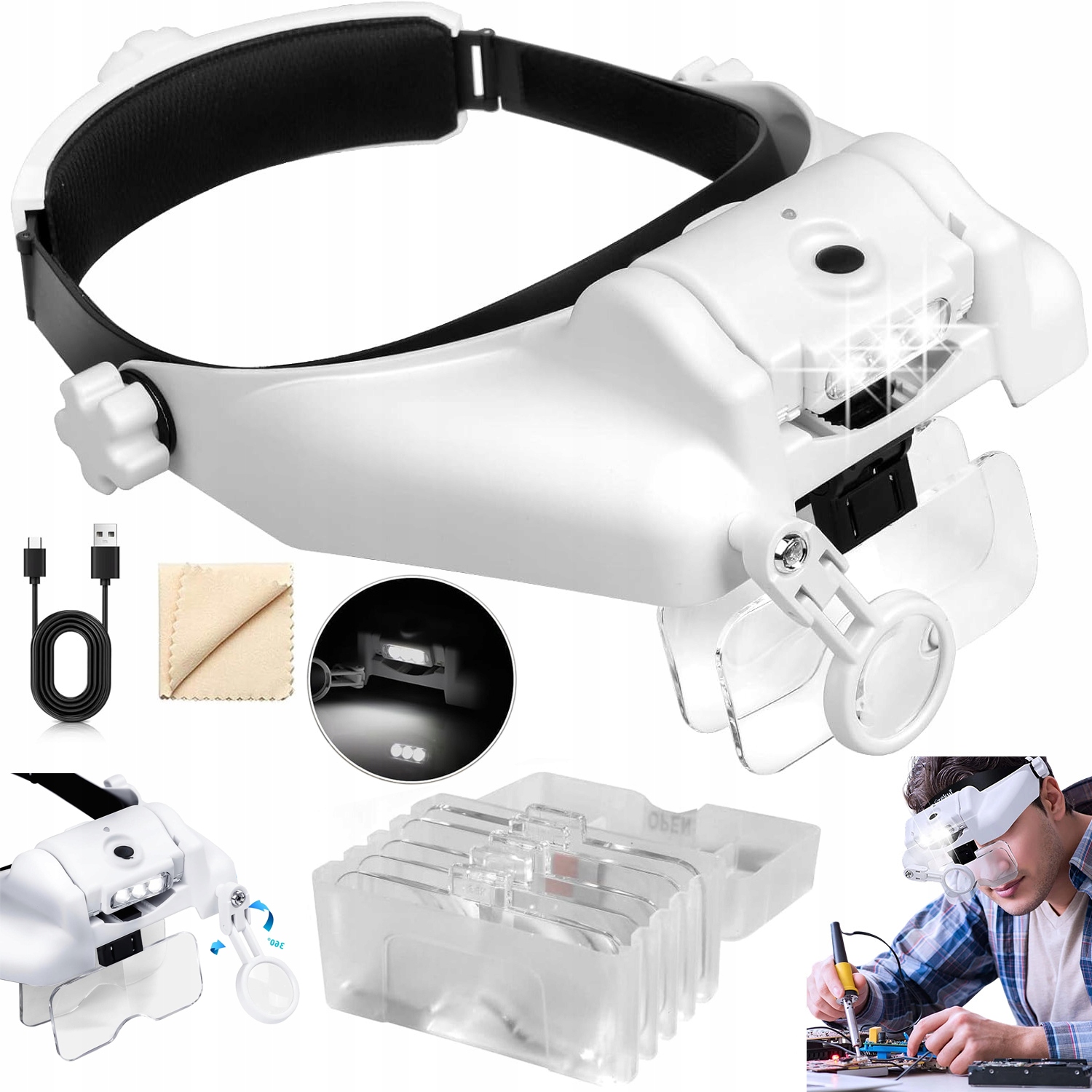Наголовная лупа с подсветкой идеально подходит как для хобби, так и для профессиональных задач, таких как вышивание крестиком, алмазная живопись, изготовление ювелирных изделий, чтение, ремонт, сварка, шитье и многое другое. Легкий и эргономичный дизайн обеспечивает удобную работу без помощи рук при выполнении любых работ, требующих близкого расстояния.