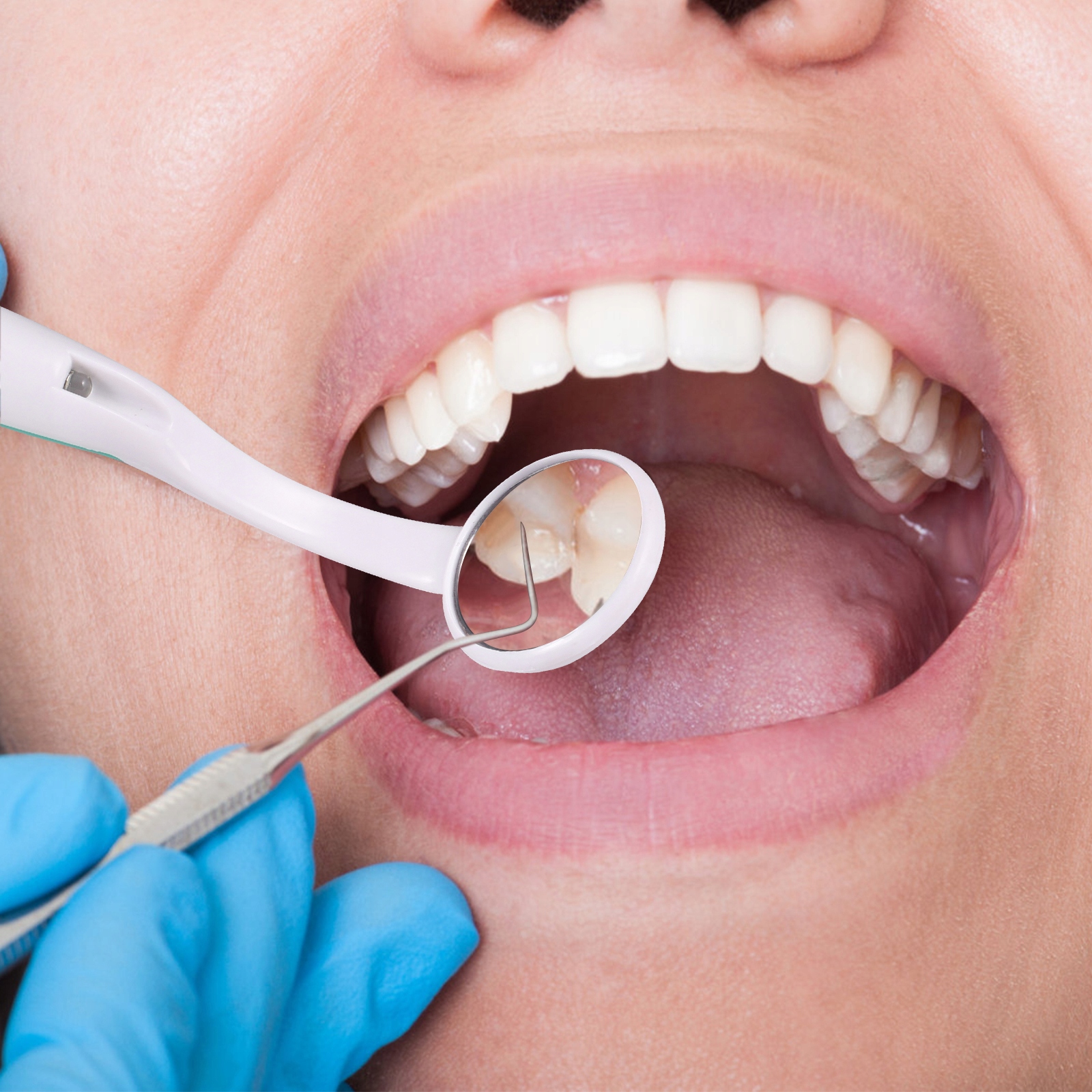 - Зеркало с защитой от запотевания помогает удалить все щели между зубами и другие пропущенные места.