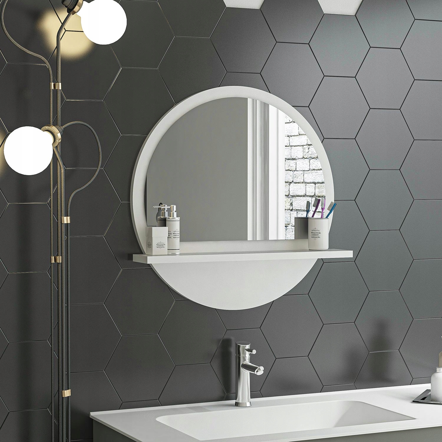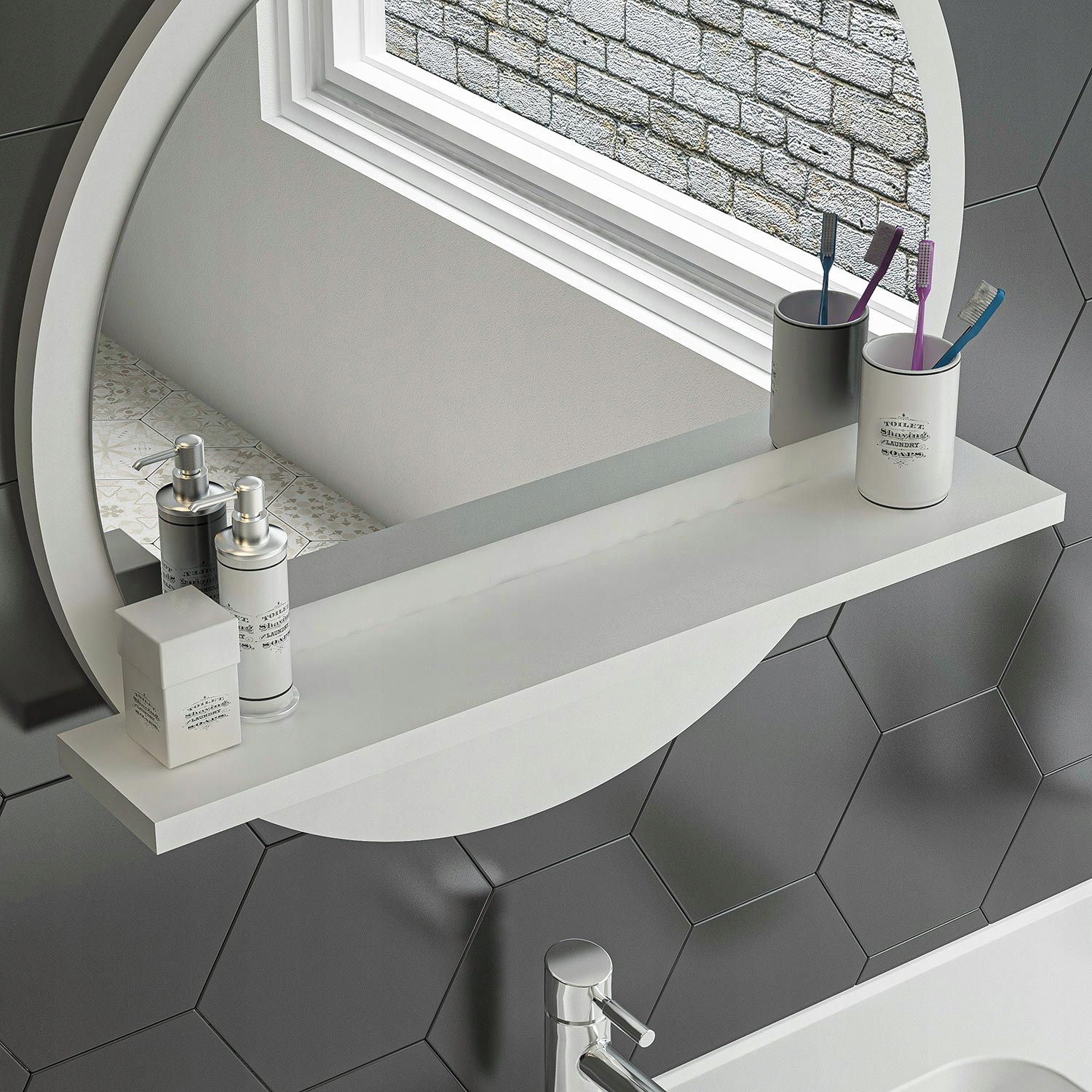 Зеркало для ванной изготовлено из ДСП, что делает его прочным и прочным. В комплект входит полка, на которой достаточно места, чтобы легко разместить необходимые туалетно-косметические принадлежности, такие как мыло, шампунь, зубную пасту и т. д.