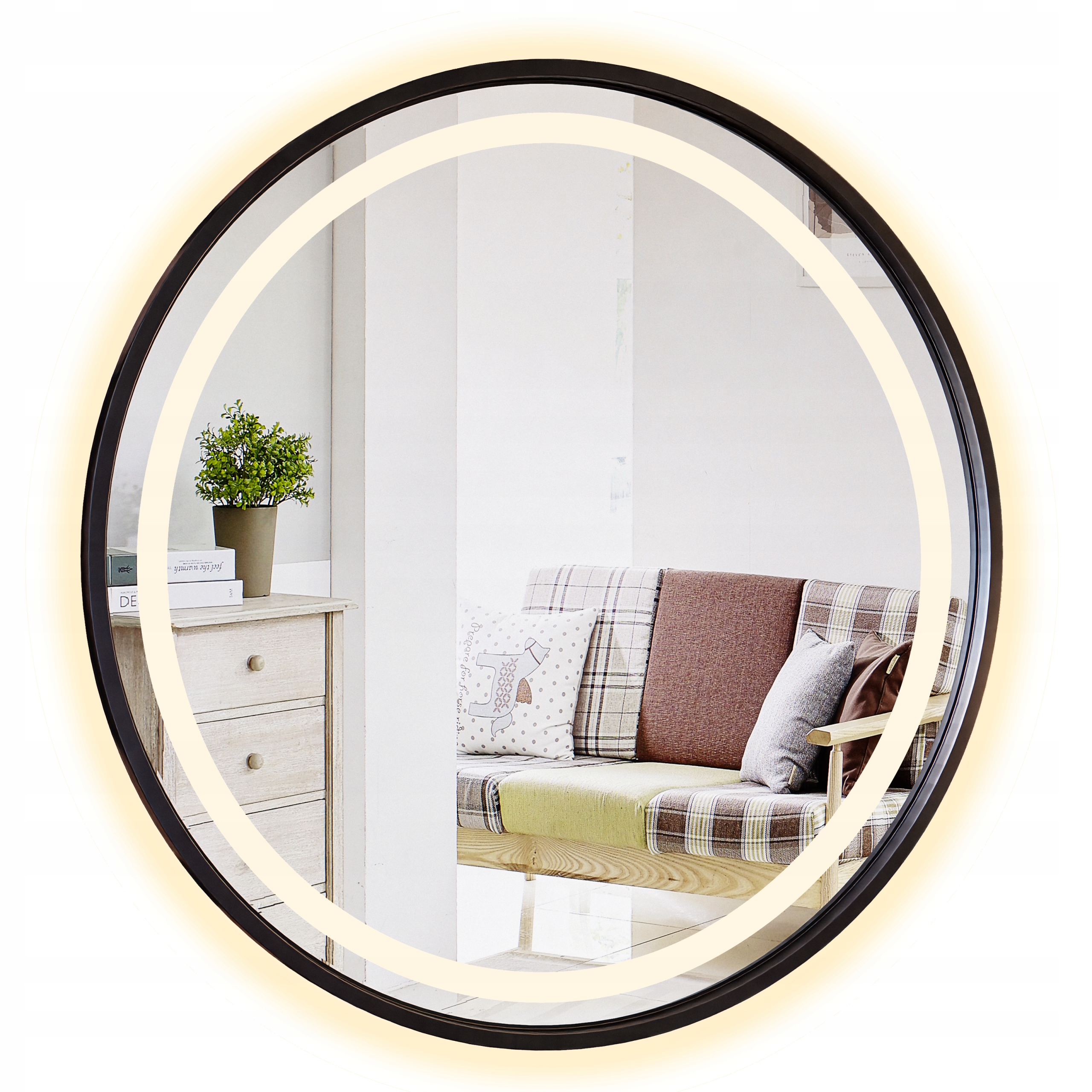 LUSTRO FI 70 CM OKRĄGŁE W CZARNEJ RAMIE LED PODŚWIETLANE LOFT
