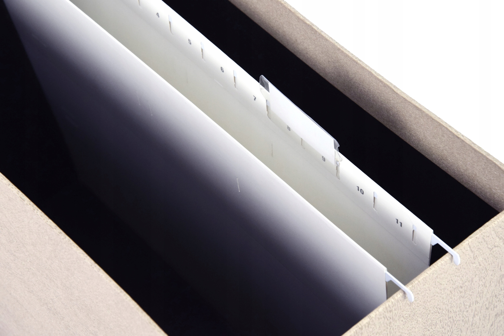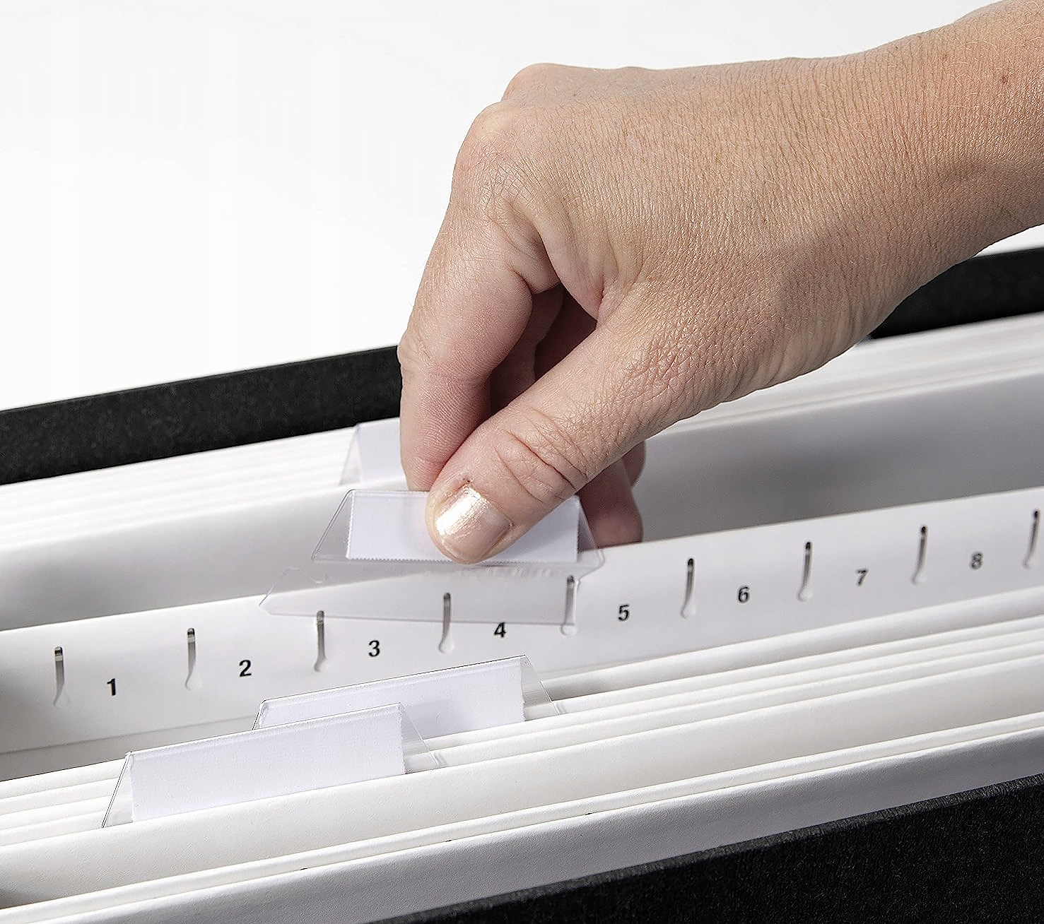 Органайзер имеет 8 подвесных папок (перегородок) в форме буквы «V»из прочного картона, в каждой папке имеются отверстия, в которые можно установить механизм папки. В комплект папок входят прозрачные пластиковые держатели для этикеток и белые бумажные этикетки. Папки позволяют индексировать и хранить документы, бумаги, заметки, отдельные листы бумаги, счета-фактуры, отчеты и другие важные офисные материалы в эстетичном и прозрачном виде. Благодаря этому все необходимые документы будут на своем месте и вы будете иметь к ним легкий доступ в любое время.