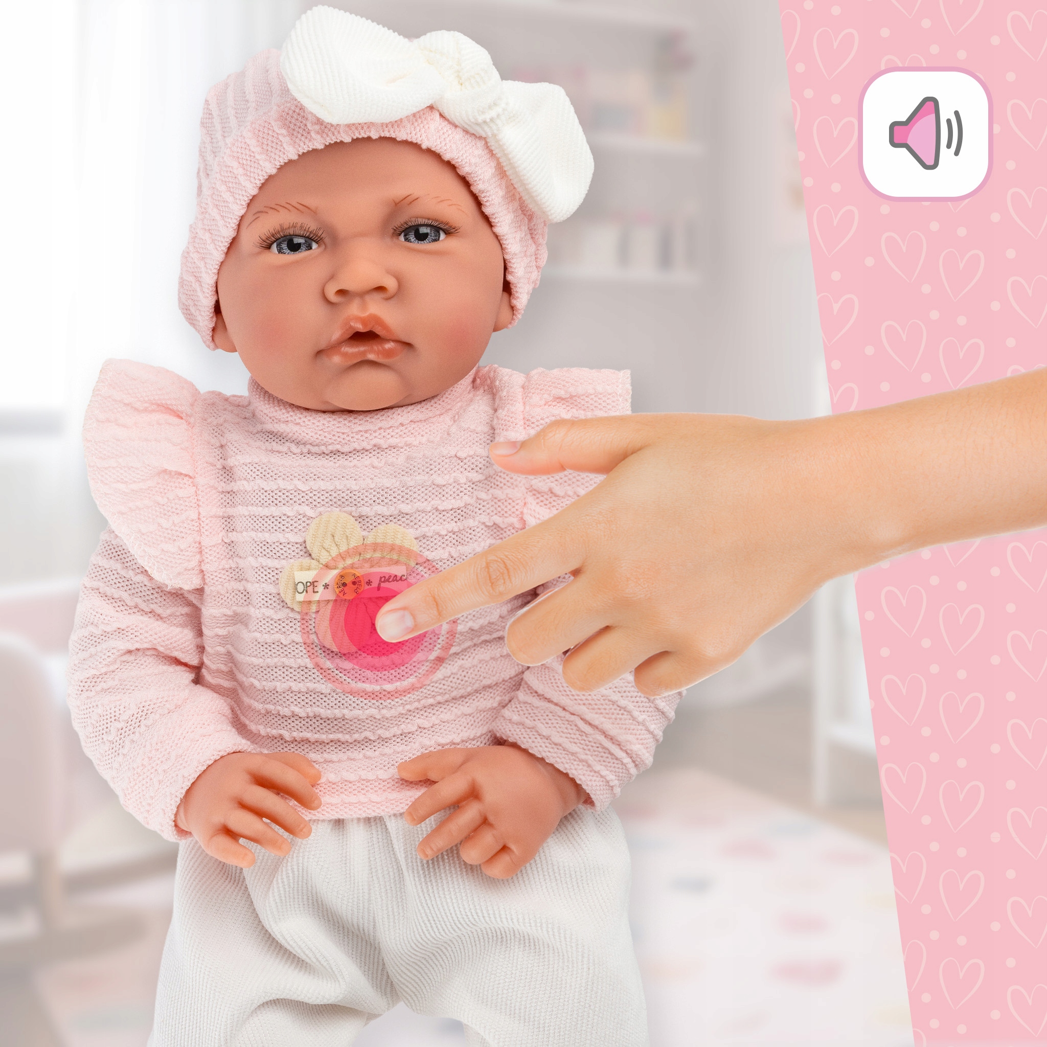 Когда вы нажимаете на его животик, кукла активирует звуковой модуль, издавая реалистичные звуки.