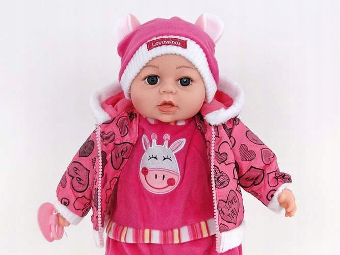 Этот красивый малыш порадует каждую маленькую маму. На нем милые шорты, шапка и куртка для холодных дней. У куклы очень красивое, чрезвычайно реалистичное лицо с большими глазами, рост 45 сантиметров. Оснащен звуковым модулем - говорит по-польски. Отличная игрушка для каждой девочки, которая любит играть дома. Когда нажимаешь на животик, кукла говорит по-польски.