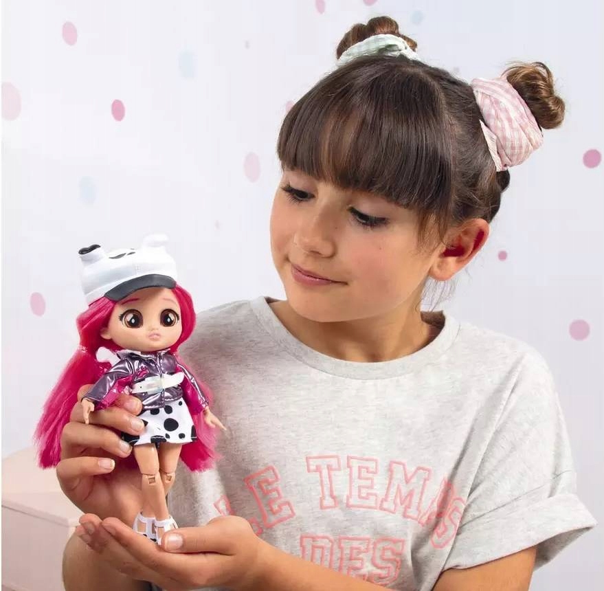 Дотти обожает горошек! На ней красивое платье в горошек, кожаная куртка металлического цвета, туфли на танкетке и клетчатые носки. Разноцветные волосы, сумочка, милая шляпка с собачьими ушками и подходящее ожерелье BFF придают ее образу очарования.