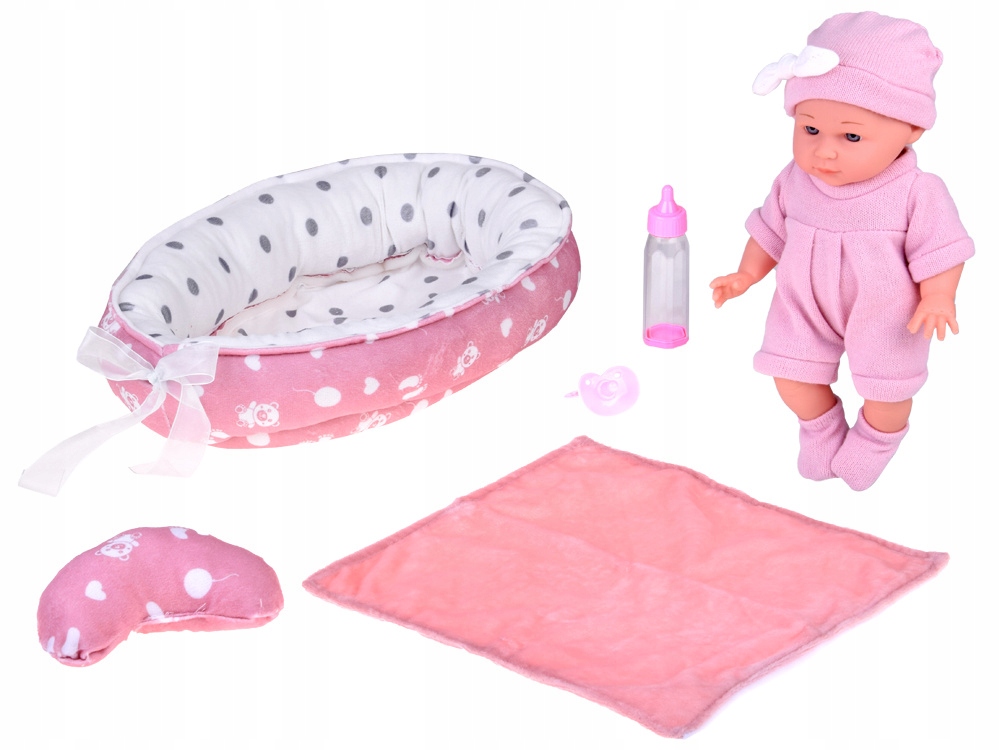 КУКЛА ДЛЯ ДЕВОЧКИ В КРОВАТИ С ОДЕЯЛОМ И ПОДУШКОЙ + АКСЕССУАРЫ