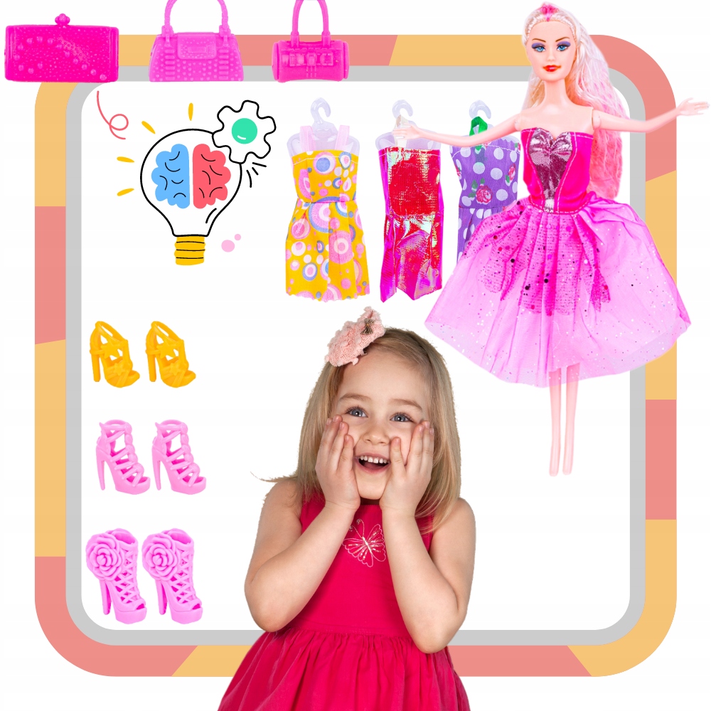 ✅ Разнообразие стилей включает 6 платьев, 4 пары обуви и сумочек, что позволяет создавать уникальные наряды;