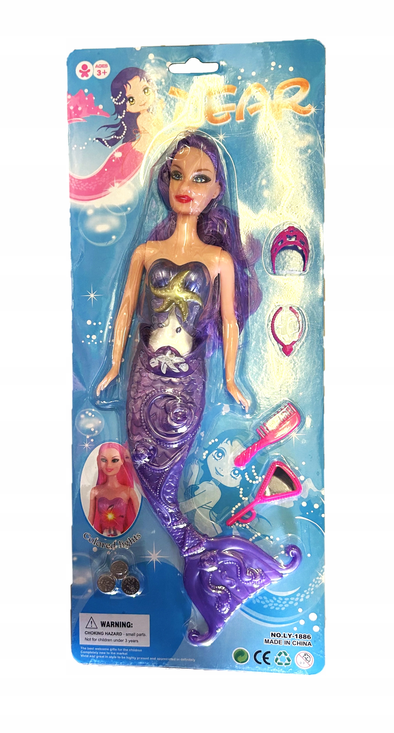 ЛЯЛЬКА МЕРМАН, СВІТОВА, З БАТАРЕЯМИ, ХВОСТИК, 25 СМ