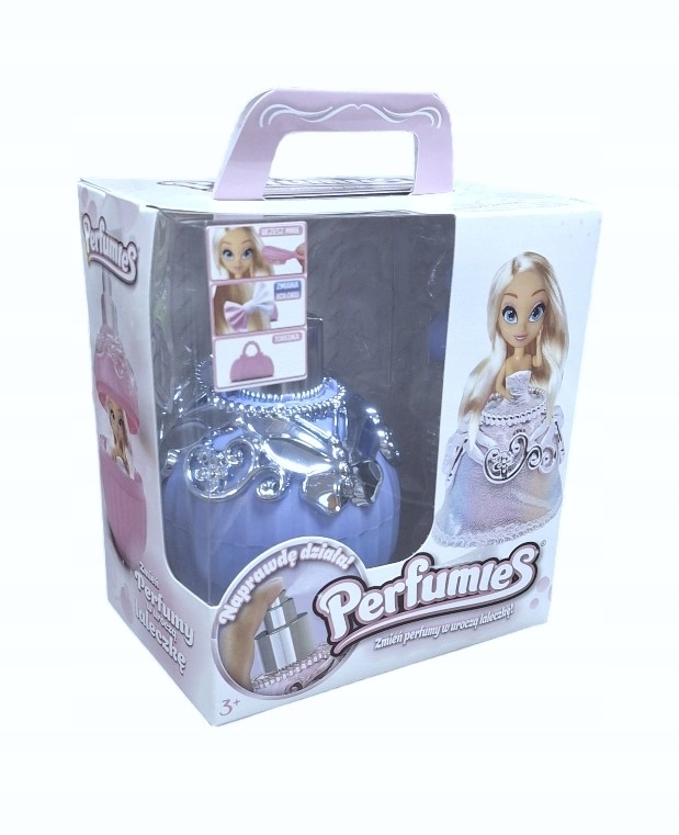 Симпатичные мини-куколки спрятаны внутри ярких декоративных флаконов. Куклы с длинными расчесанными волосами, одетые в бальные платья, похожи на сказочных принцесс. В комплект с куклой и флаконом входит расческа, украшение для волос и сумочка.
