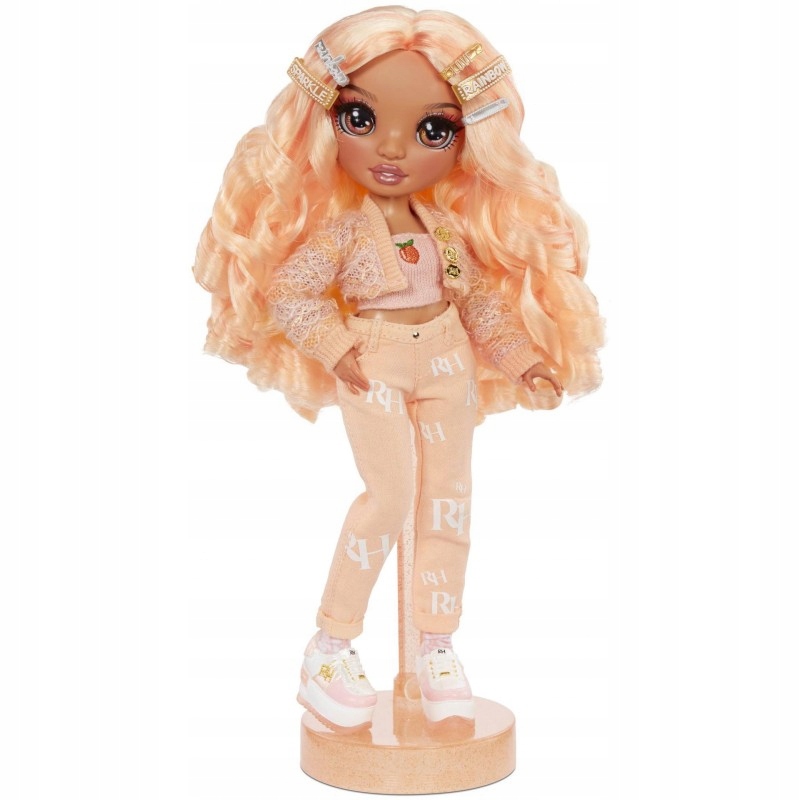 p>Соберите коллекцию красивых кукол из серии Rainbow High. Знакомьтесь, ДЖОРДЖИЯ БЛУМ – она одета в персиковое платье, имеет великолепные функции. Шарнирные конечности позволяют устанавливать его в любую позу (руки и ноги сгибаются). В наборе GEORGIA BLOOM 2 комплекта одежды.