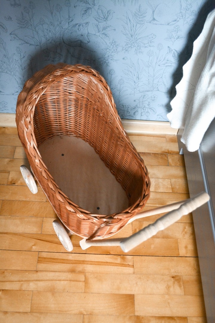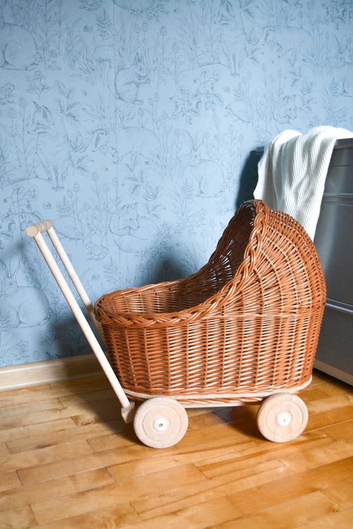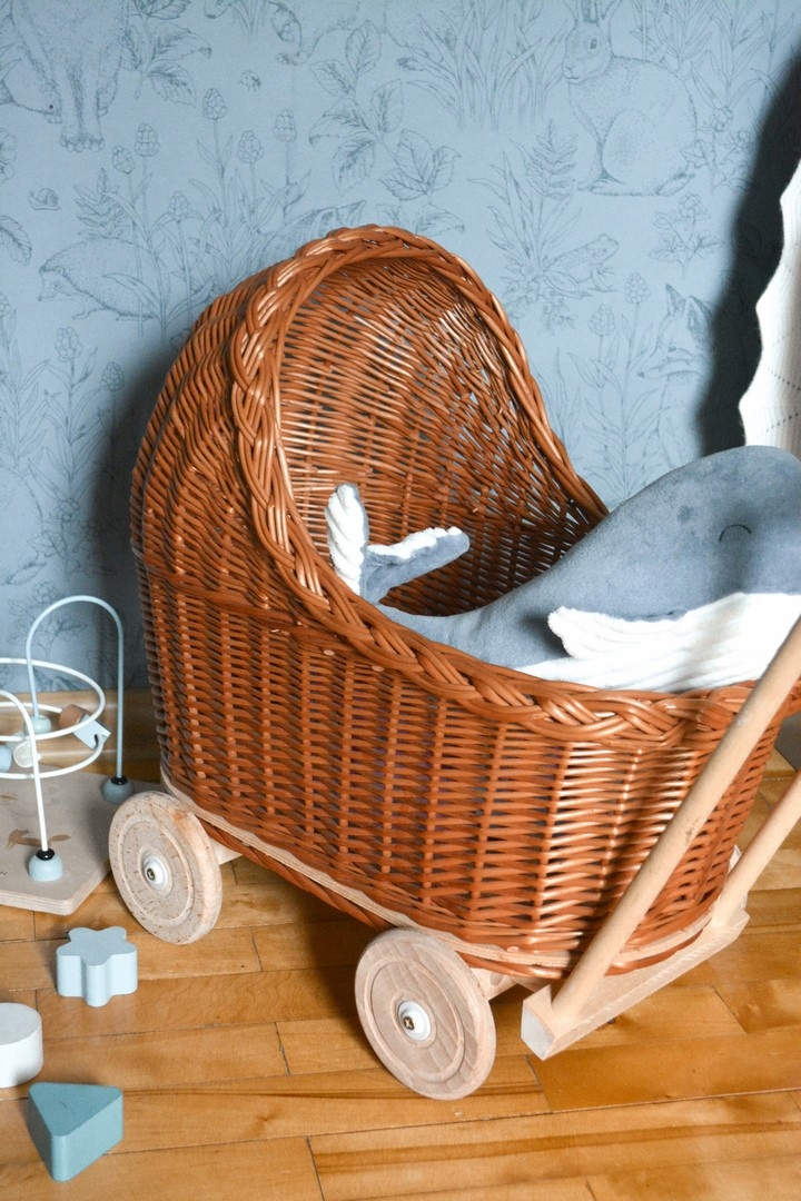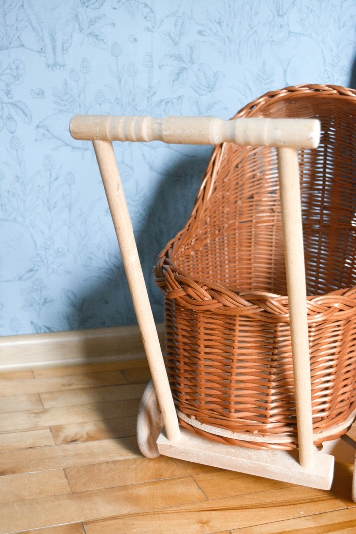 Плетеная коляска для кукол низкая НАТУРАЛЬНАЯ толкатель