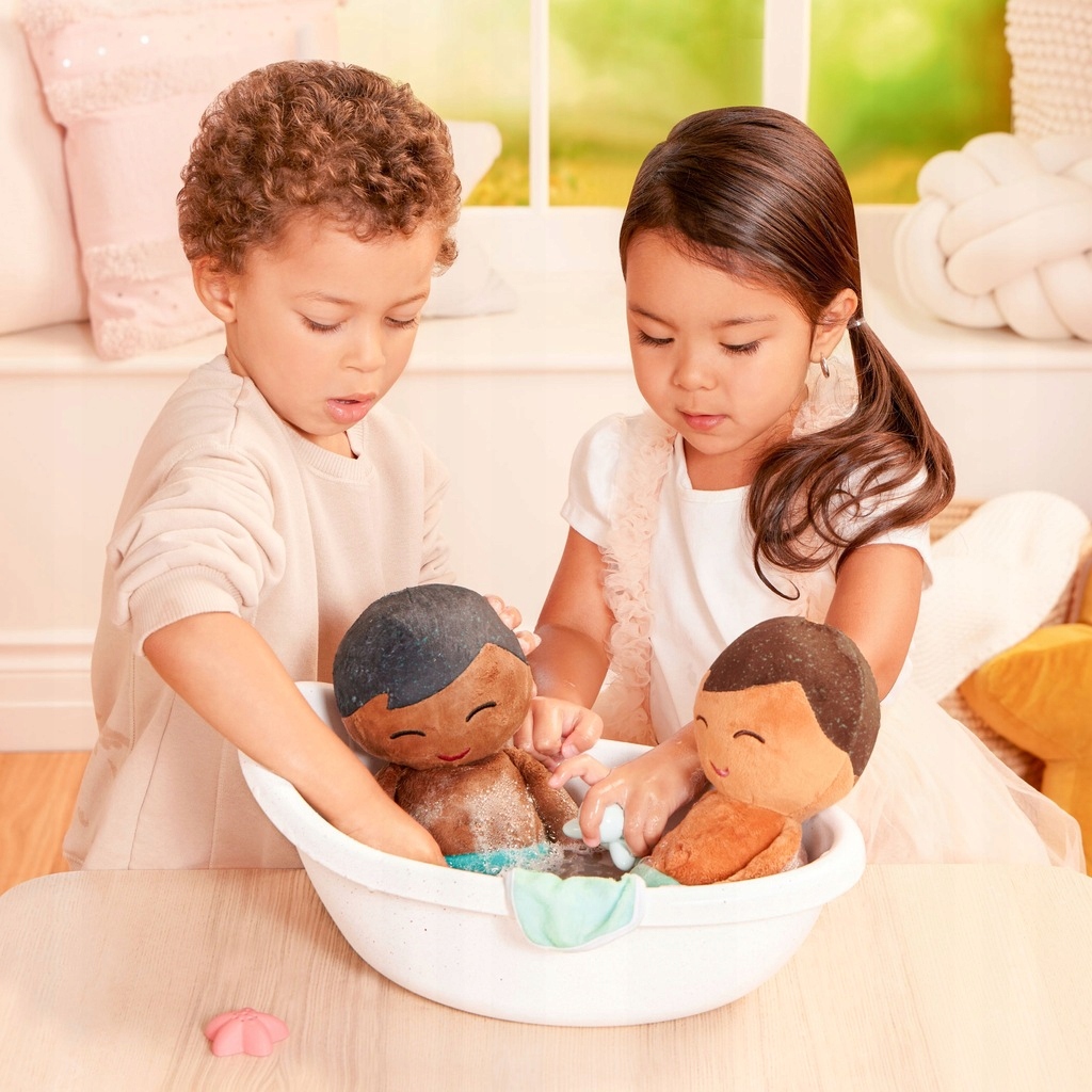 Набор позволяет детям играть сцены, связанные с ванной, и играть в роли заботливых родителей, когда дети заботятся о своих куклах.