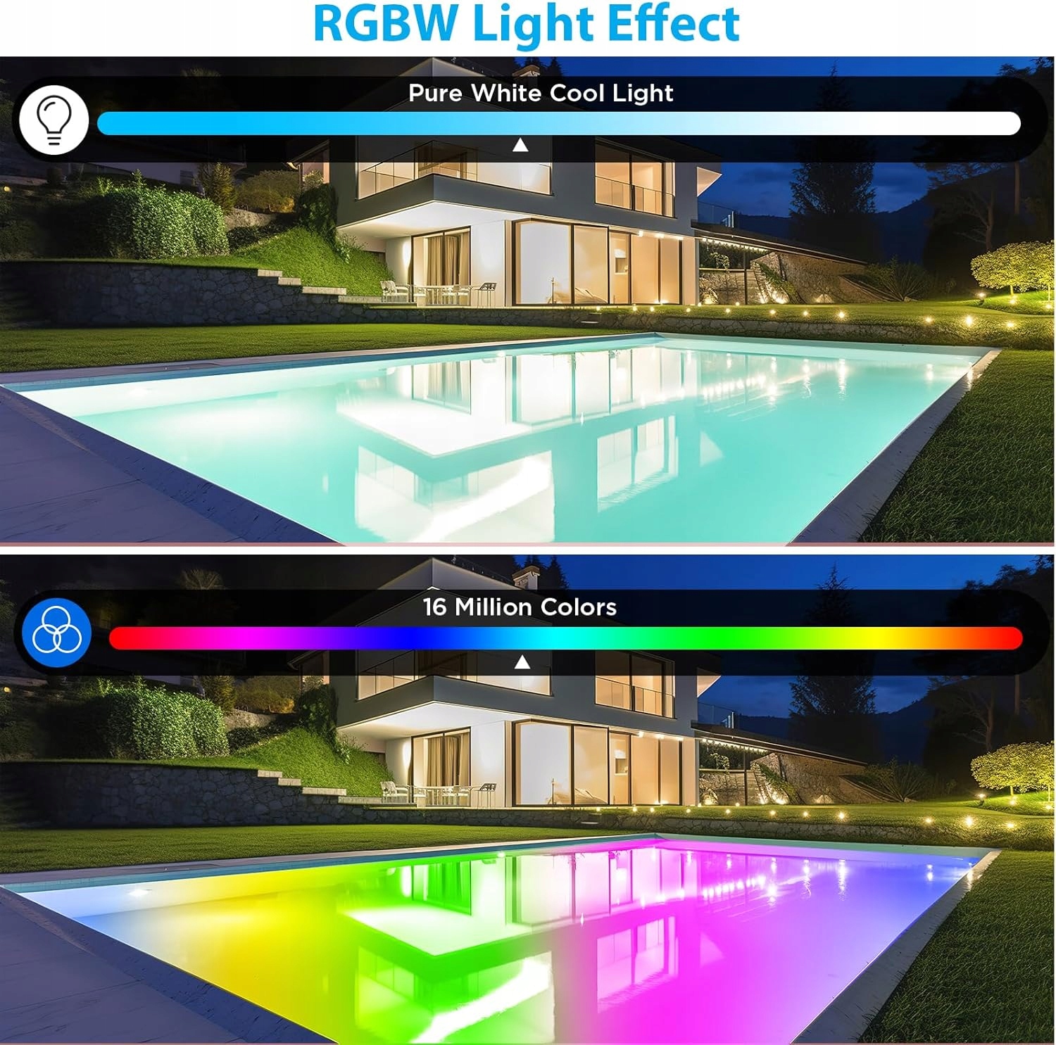 Интеллектуальное управление освещением пула с использованием приложения - наши проекторы RGBW Pool предлагают впечатляющий выбор из 16 миллионов регулируемых цветов. Благодаря обновленным чипам высокой стабильности они обеспечивают более быстрый коэффициент реакции, чтобы регулировать цвета и яркости. Подключите их к телефону и наслаждайтесь контролем более 16 миллионов цветов, управления группой, динамических сцен, музыкальной синхронизации, диммера и различных цветовых эффектов.
