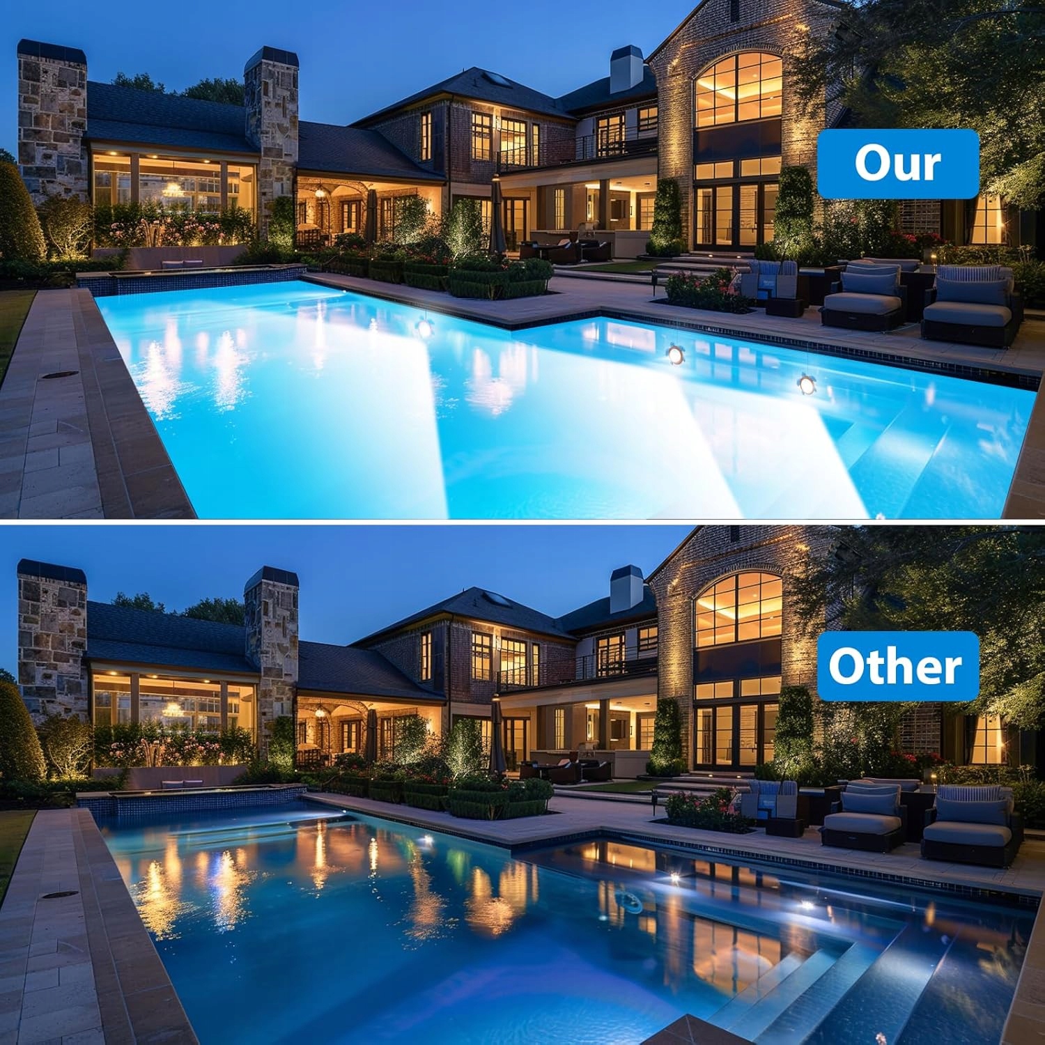 - Отличное подводное освещение - Откройте для себя сияние наших супер ярких подводных огней. Благодаря высокой выходной мощности 40 Вт, эти огни обеспечивают высокую яркость 1600 лм, эффективно освещая бассейны более 35 м².