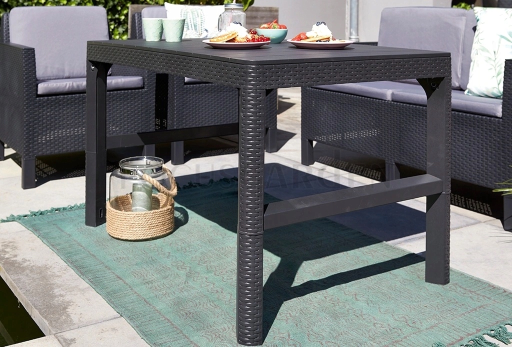 Двухпозиционный стол Lyon – чрезвычайно функциональное решение, позволяющее организовать пространство в зависимости от потребности пользователей. Конструкция позволяет установить стол в двух вариантах: низком (кофейном) или высоком (обеденном), идеально подходящем для приема пищи. Простой по форме, удобный в использовании и очень простой в установке и использовании. Устойчив к неблагоприятным погодным условиям и ультрафиолетовым лучам.
