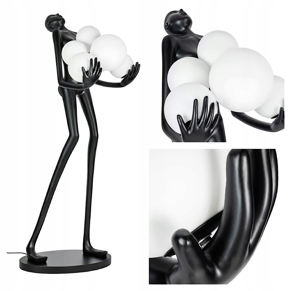 Лампа с размером и высотой соответствует естественному росту человека. Светящаяся фигура освещает перед ним светлые шарики, заполняющие интерьер