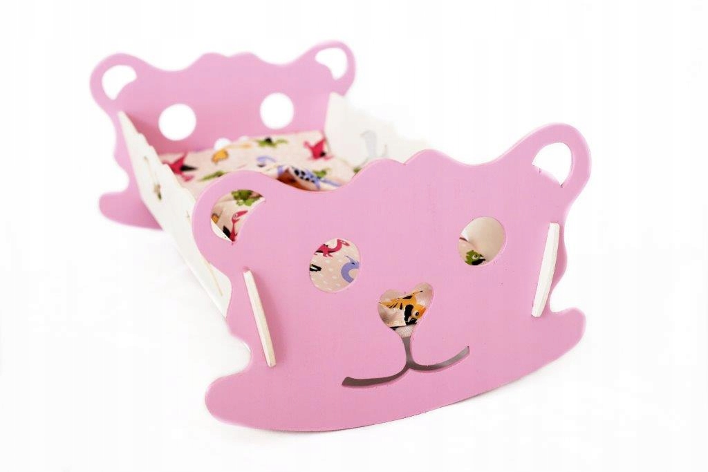 Люлька для ляльок з постільною білизною у пастельний малюнок ведмедика
