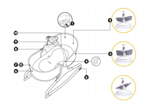 Сама игрушка может быть установлена под другим углом наклона и повернута на 180 градусов, что облегчает доступ родителя к ребенок.