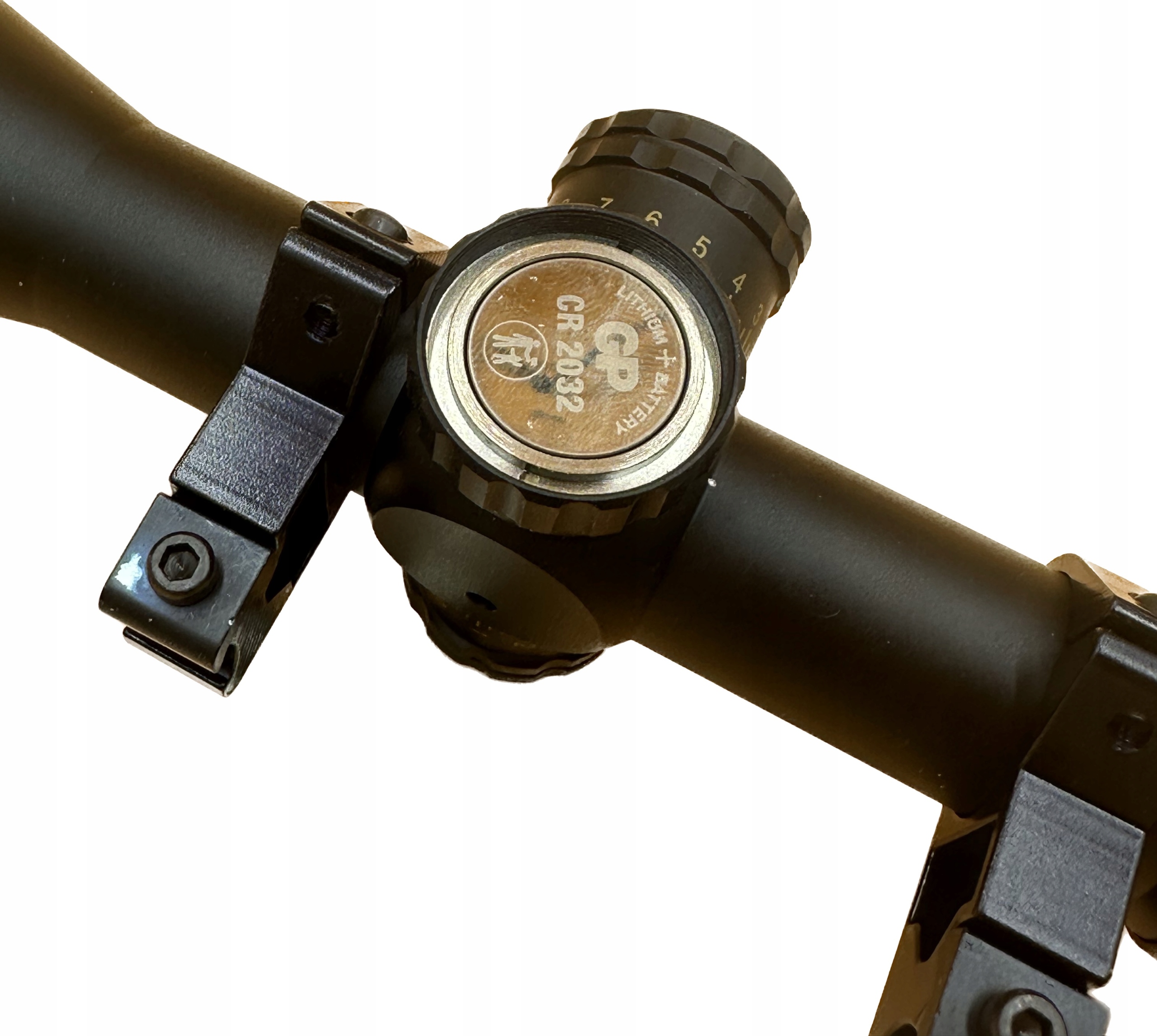 Телескоп был предоставлен с помощью скрещенного креста -поперечного скрещивания с 5 -ступенчатой регулировкой интенсивности света с выбором 2 цветовых вариантов.