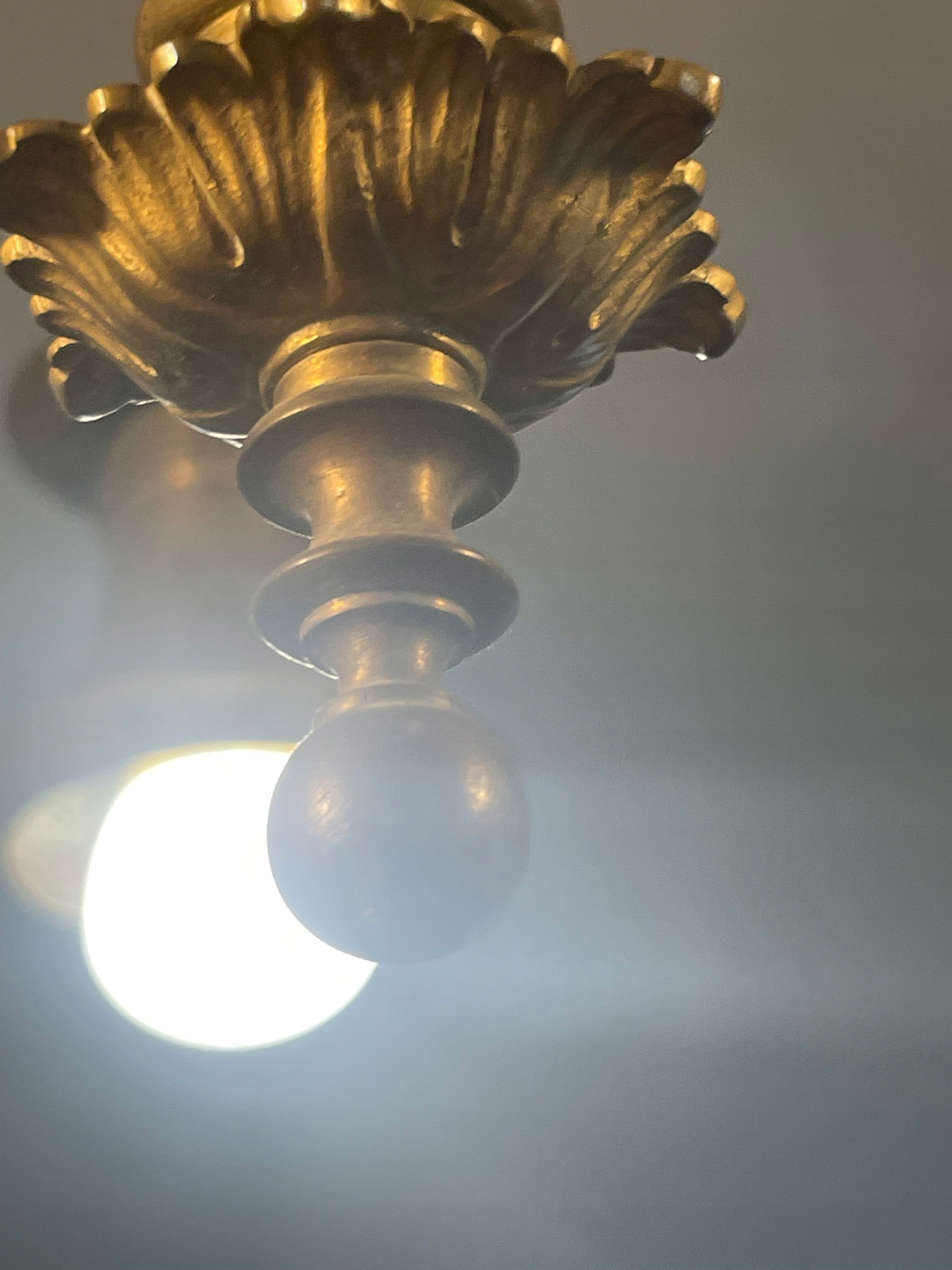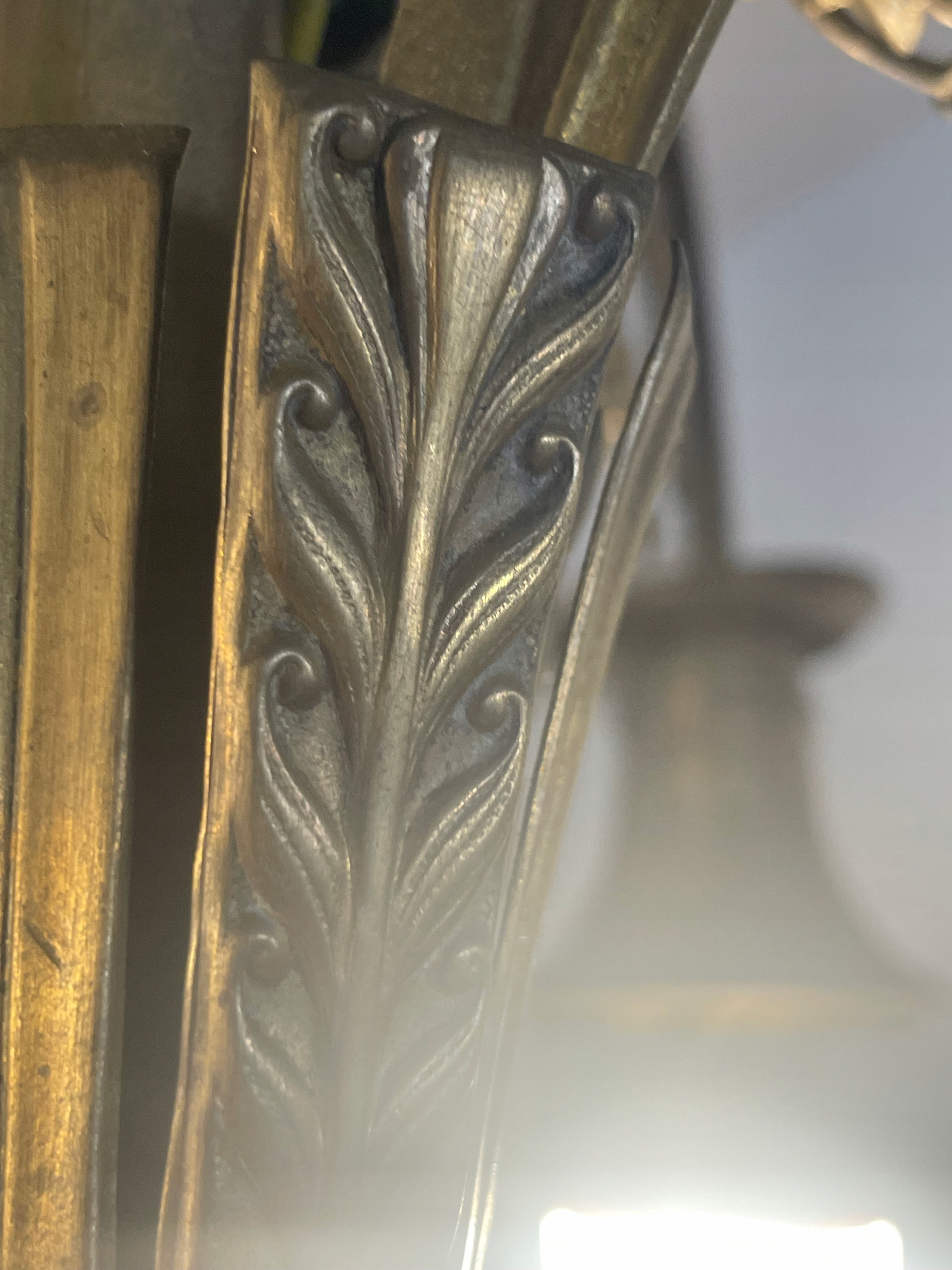Состояние видно на фотографиях, люстра требует незначительного ремонта, имеет одну трещину в декоре и локальные деформации и загрязнения. цена снижена из-за описанных дефектов.