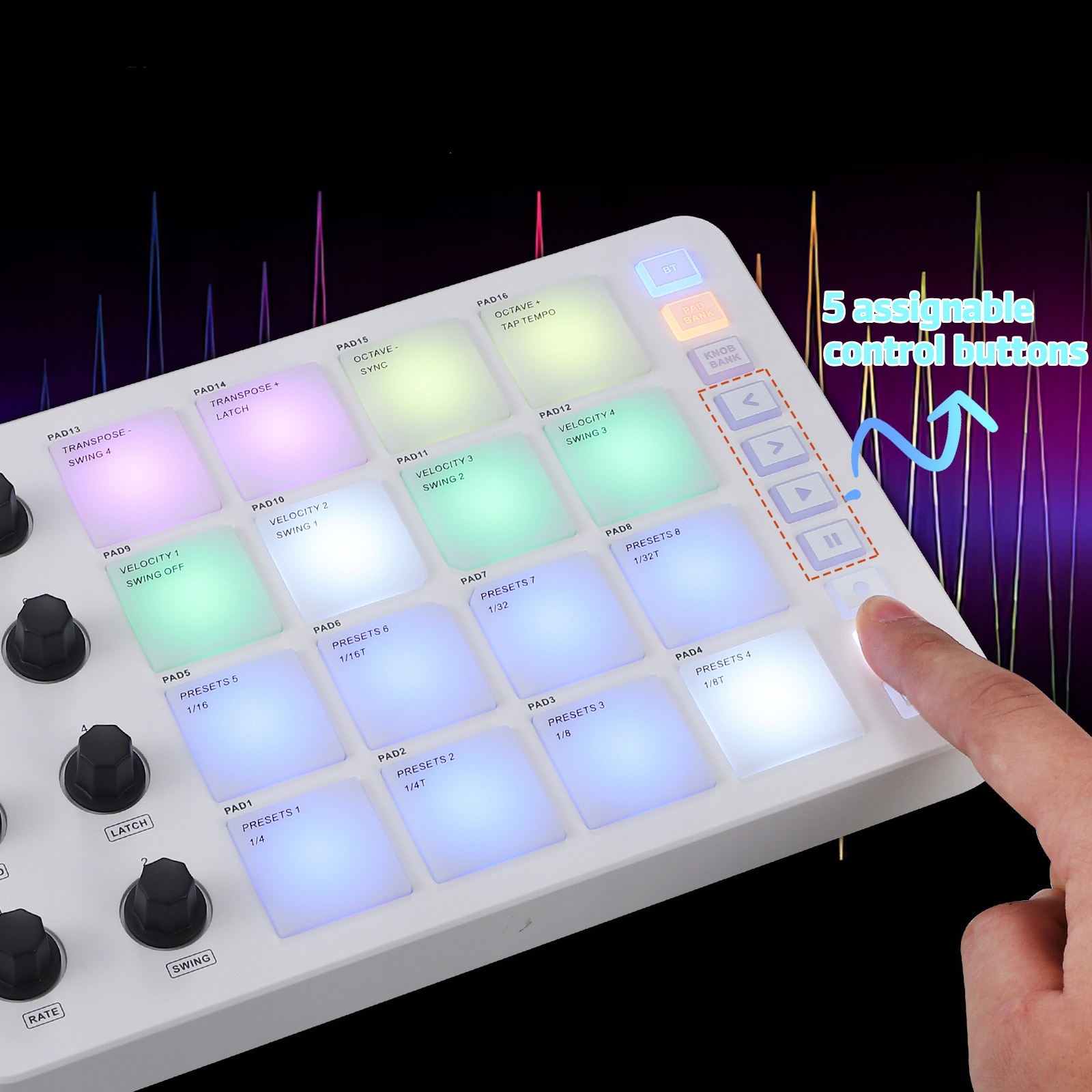 Этот профессиональный контроллер MIDI был создан для современных музыкальных создателей, которые ожидают точности, переносимости и интеграции без проблем. Оснащенные 8 вращающимися ручками, 16 колодками, чувствительными к скорости RGB и беспроводными возможностями, позволяет музыкантам производить, исполнять и составлять везде, где появится вдохновение. Независимо от того, работаете ли вы в DAW, выполняете живые или управляющие аппаратные синтезаторы, этот компактный контроллер ставит полный креативный контроль под рукой.