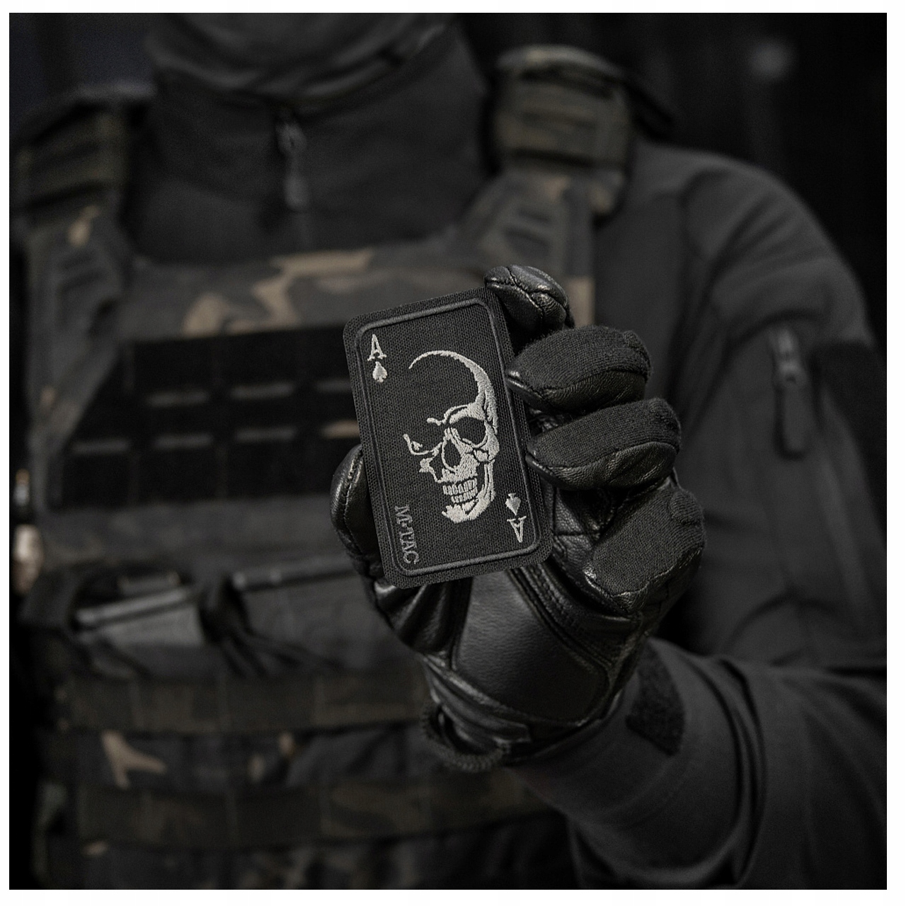 Выделитесь из толпы и подчеркните характер своей экипировки с помощью тактической нашивки FACE OF WAR. Это стильный и символичный аксессуар, созданный для любителей военного дела, выживания и активного отдыха. Выполненная в форме пикового туза с изображением черепа, она отсылает к классическим «картам смерти», которые использовали солдаты во время войны во Вьетнаме.
