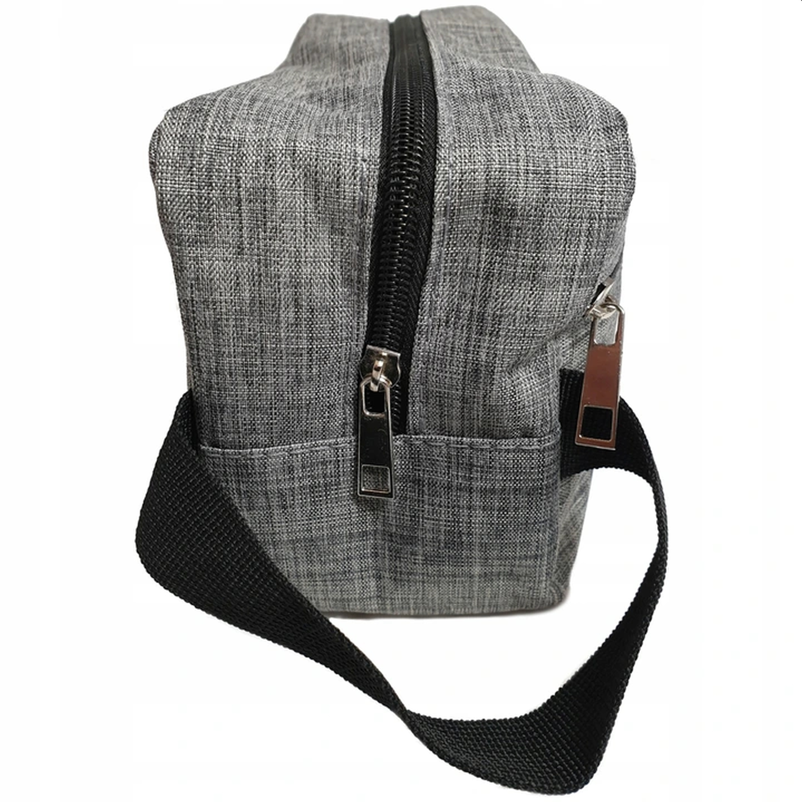Мужская косметичка серого цвета на молниях, придающих характер.