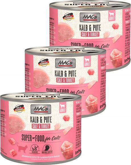 MAC'S CAT З ТЕЛЯТИНОЮ ТА ІНДИЧКОЮ ДЛЯ КОТІВ 6х200г